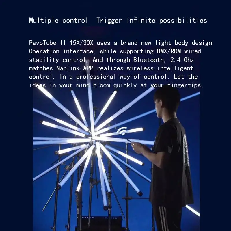 И поддерживает проводной DMX/RDM для более стабильного управления и беспроводного управления
