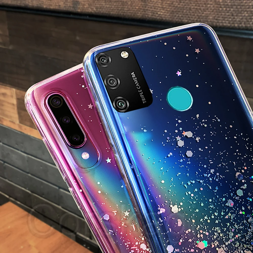 Чехол для Xiaomi POCO X3 X3 NFC M3, прозрачный чехол из серебристой фольги с блестками и звездами для Redmi 9 9A 9T 9C 8A 7A Mi 9 Lite SE 9T 10 10Pro