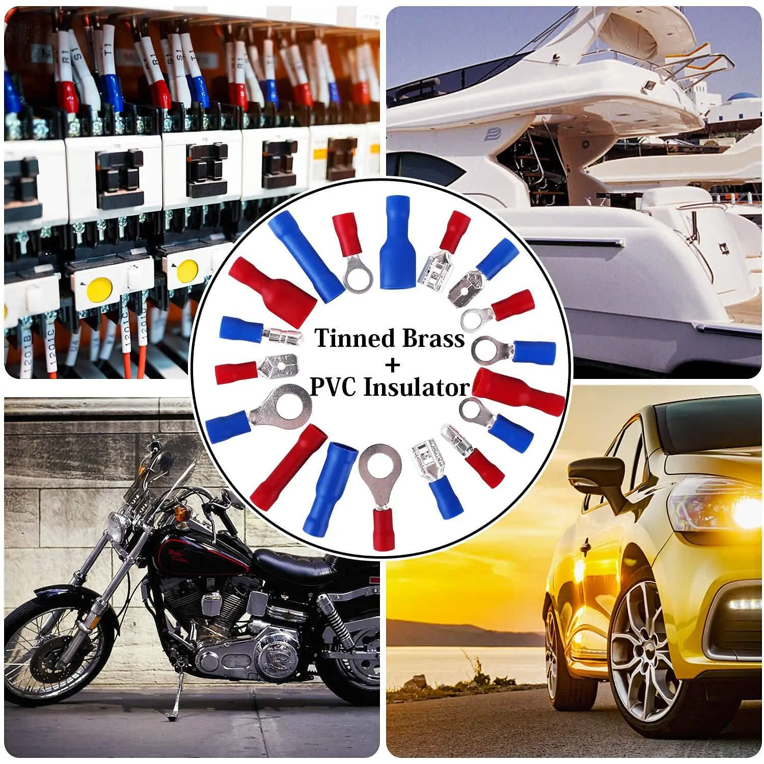 【DURABILITY】 каждый стык, кольцо, крюк и Вилка Терминал имеет толстый Луженый Медный бочонок, который устойчив к коррозии, чтобы держать провод плотно, когда гофрированы. Чтобы ваш провод никогда не выскальзывал из этих разъемов. Кроме того, полупрозрачные термоусадочные трубки обеспечивают высокую прочность на растяжение, а также устойчивость к растягиванию и механическим повреждениям.