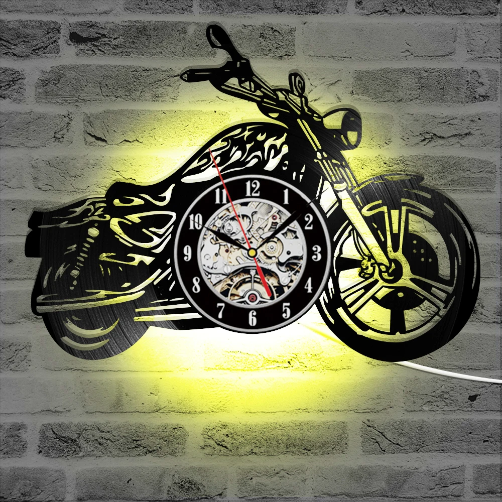 Модные мотоциклетные Светящиеся Настенные часы с виниловой пластиной для украшения гостиной
