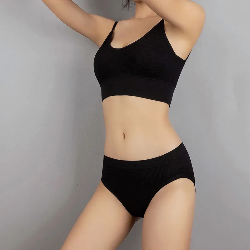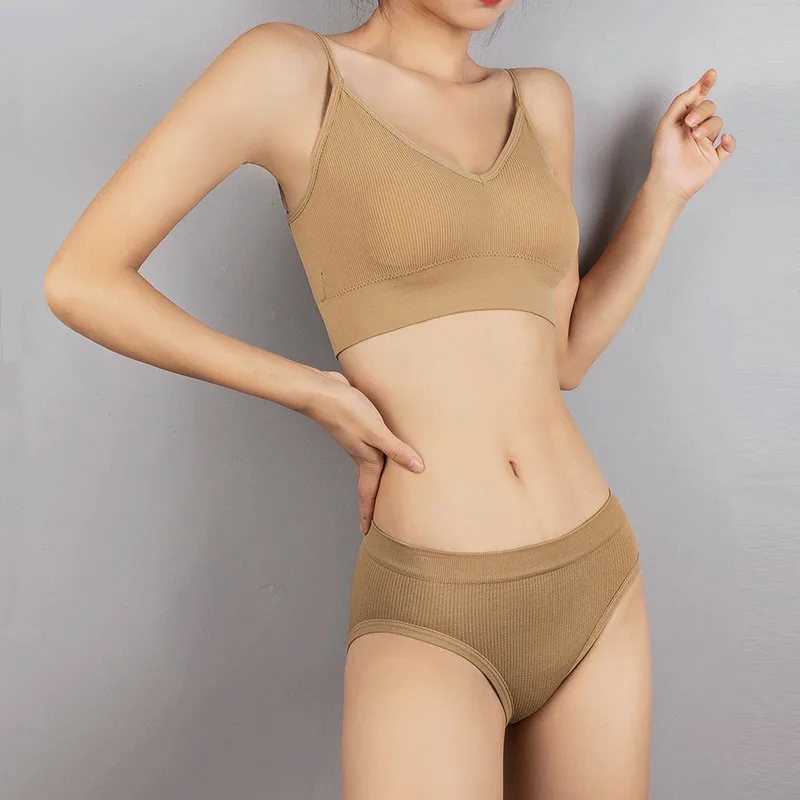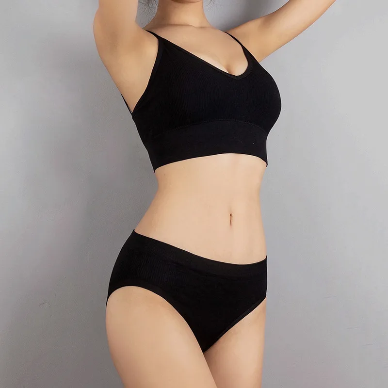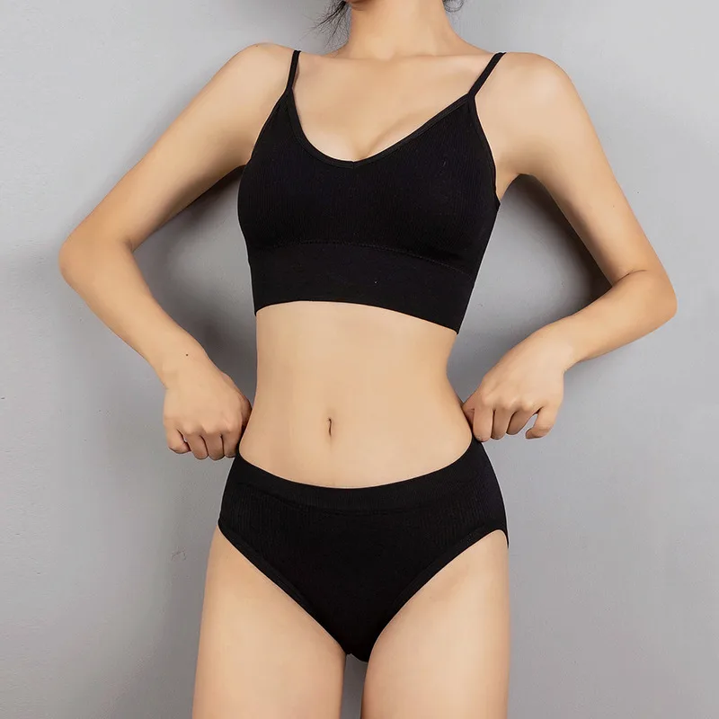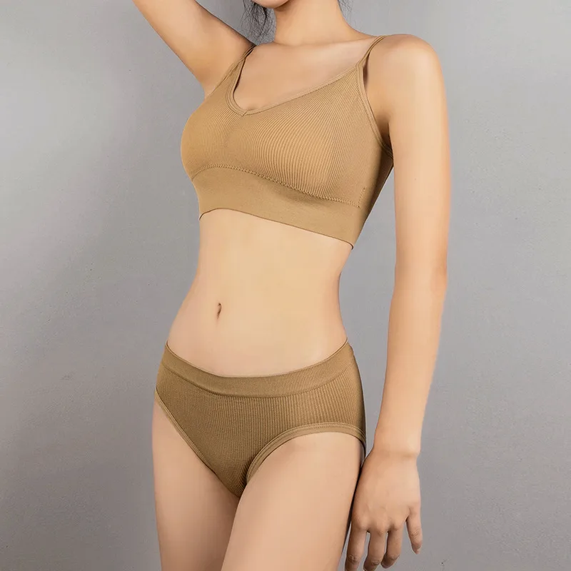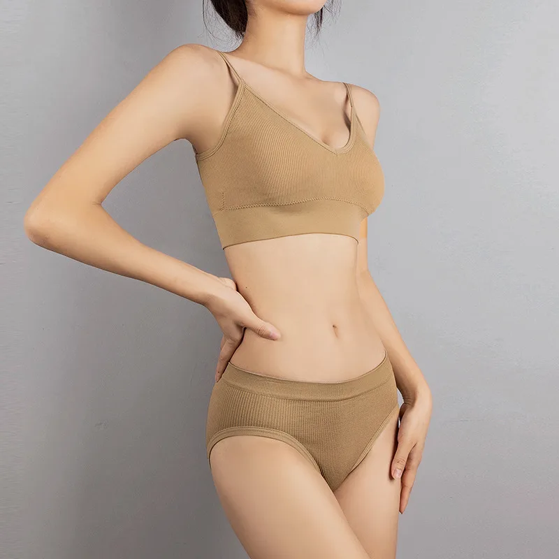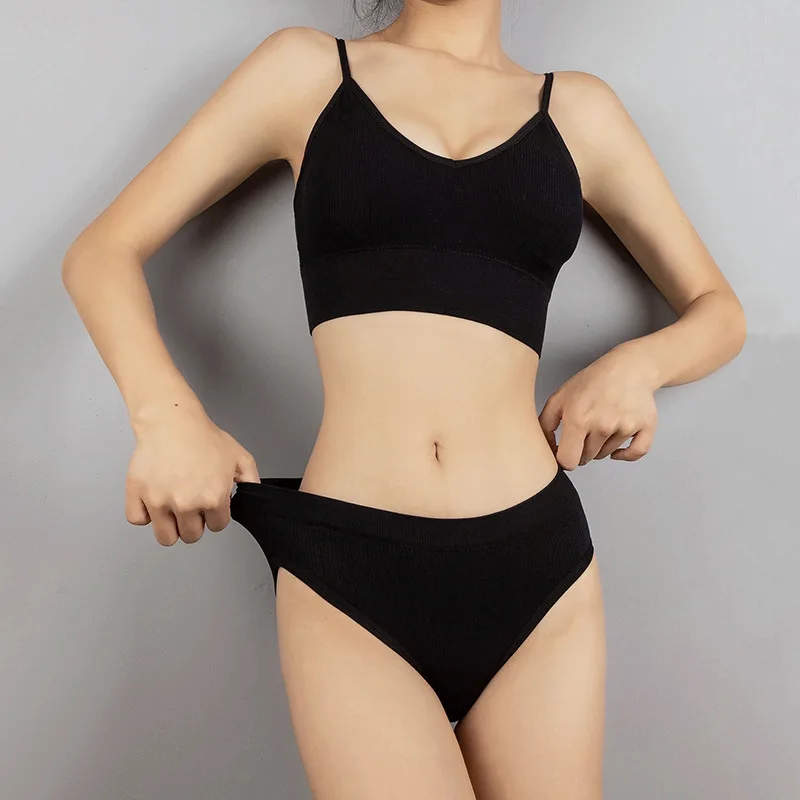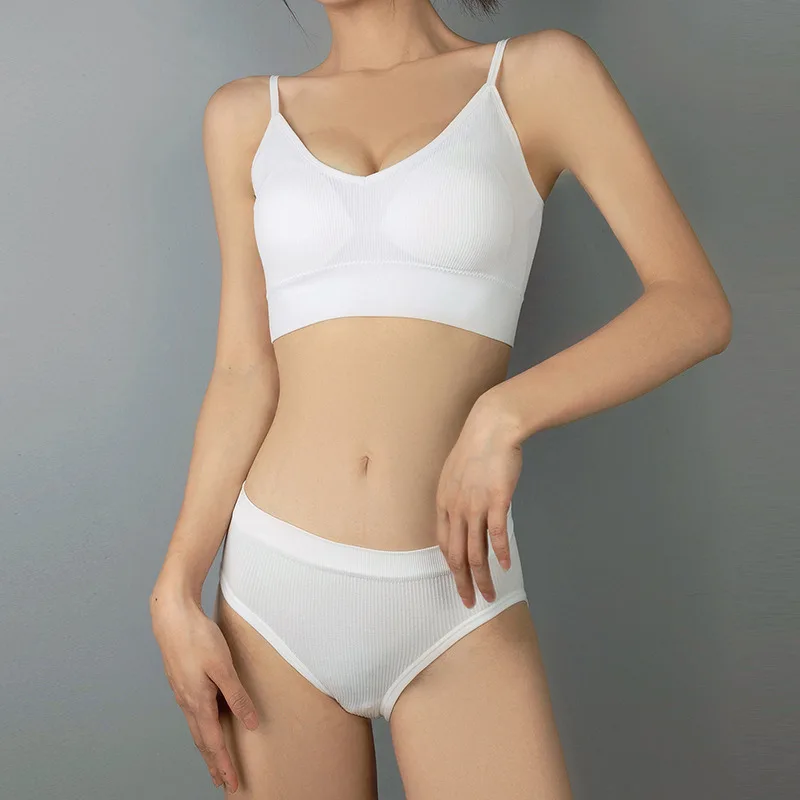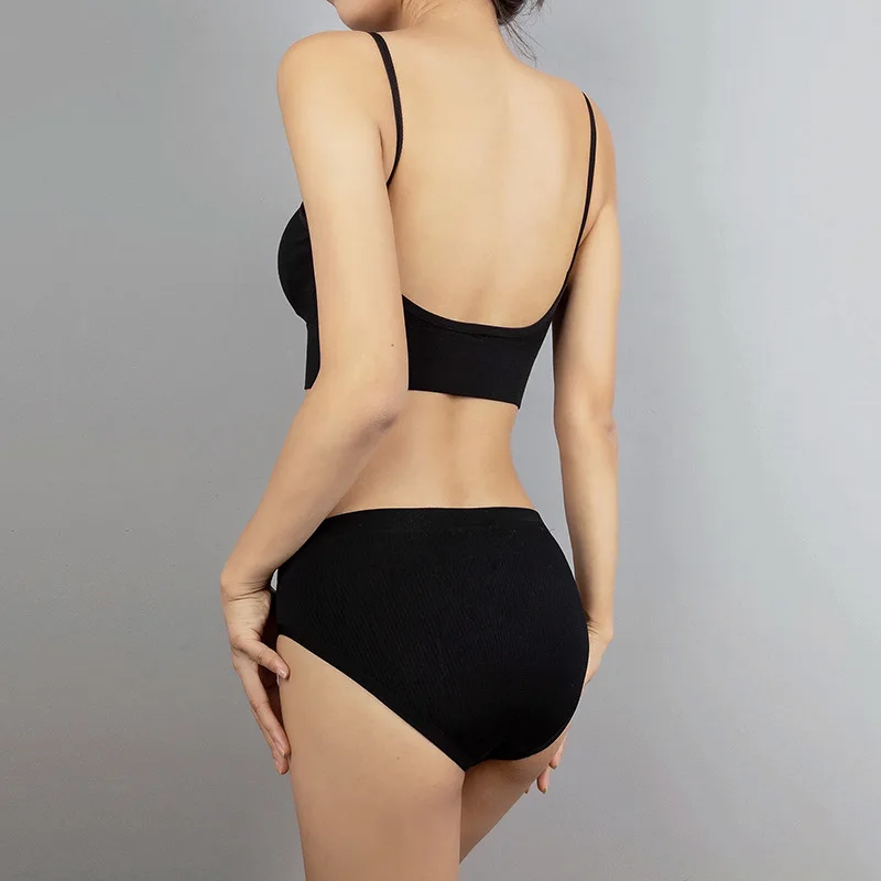 Комплект из 2 предметов с бюстгальтером, женский сексуальный бюстгальтер, сексуальное женское нижнее белье, ребристые топы, модные бюстгальтеры для девочек, базовый эластичный Топ на бретелях