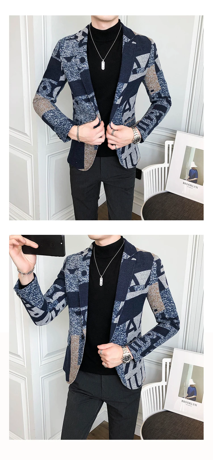 Осенне-зимний художественный Мужской Блейзер 2020, приталенный Блей...