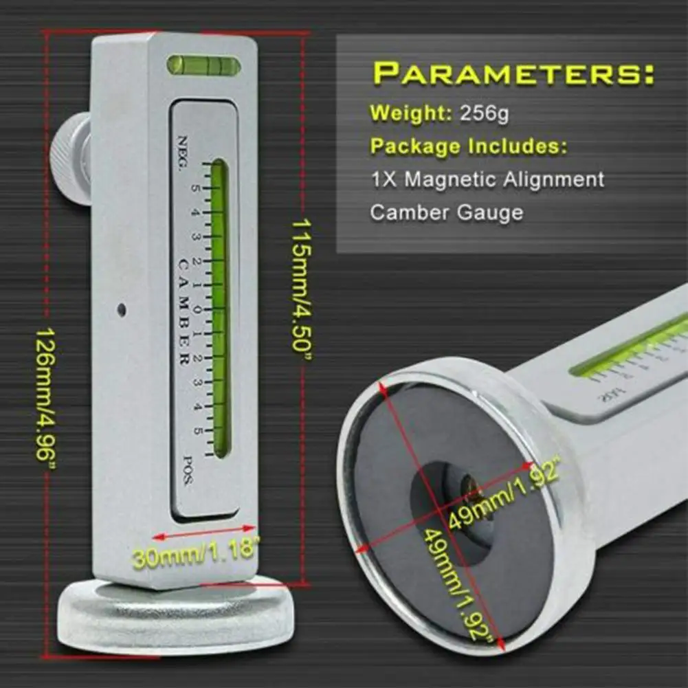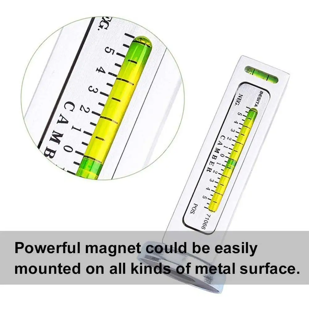 Характеристика:1. Устройство экономии времени и денег.2. Вес: 256 г/9,14 унций3. Измеряет Угол развала и Кастер на ступице колеса или тормозном диске.4. Имеет простую регулировку выравнивания от-5 градусов до 5 градусов.5. Это позволяет регулировать для поддержания правильного выравнивания колес и даже износа шин.6. Это регулируемое оборудование позволяет вернуть стойки в исходное положение развала после демонтажа этого регулируемого оборудования позволяет вернуть стойки в исходное положение развала после демонтажа и повторной сборки Подвески или проверить количество развала изменяется перед повторной установкой.Инструкции по использованию:1. Снимите датчик центровки колес (инструмент зажима), снимите шину;2. Магнитный Уровнемер тщательно расположен на стороне дисковых тормозов всасывающего колеса;3, уровень воды был скорректирован до нуля;4. Установите требуемое местоположение конкретных частей;5. Используйте специальный инструмент с индикацией уровня магнита, отрегулируйте расположение детали под нужным углом измерения.6, проверьте локатор, если есть небольшое отклонение, просто для тонкой настройки транспортного средства. (Обычно небольшое отклонение не вызывает ошибки)Посылка включает в себя: 1 шт.