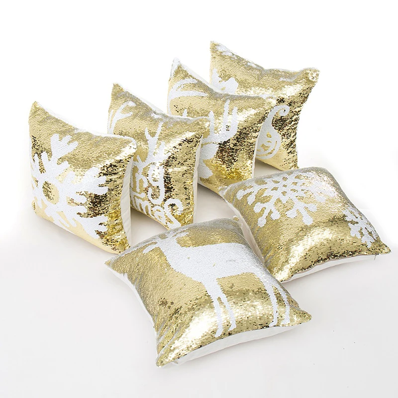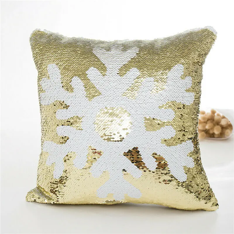 40 см х 40 см золотистыми пайетками для девочек Рождественский Чехол на подушку Снежинка шаблон Подушка Чехол Декоративные с невидимых застежек-молний (для домашнего декора