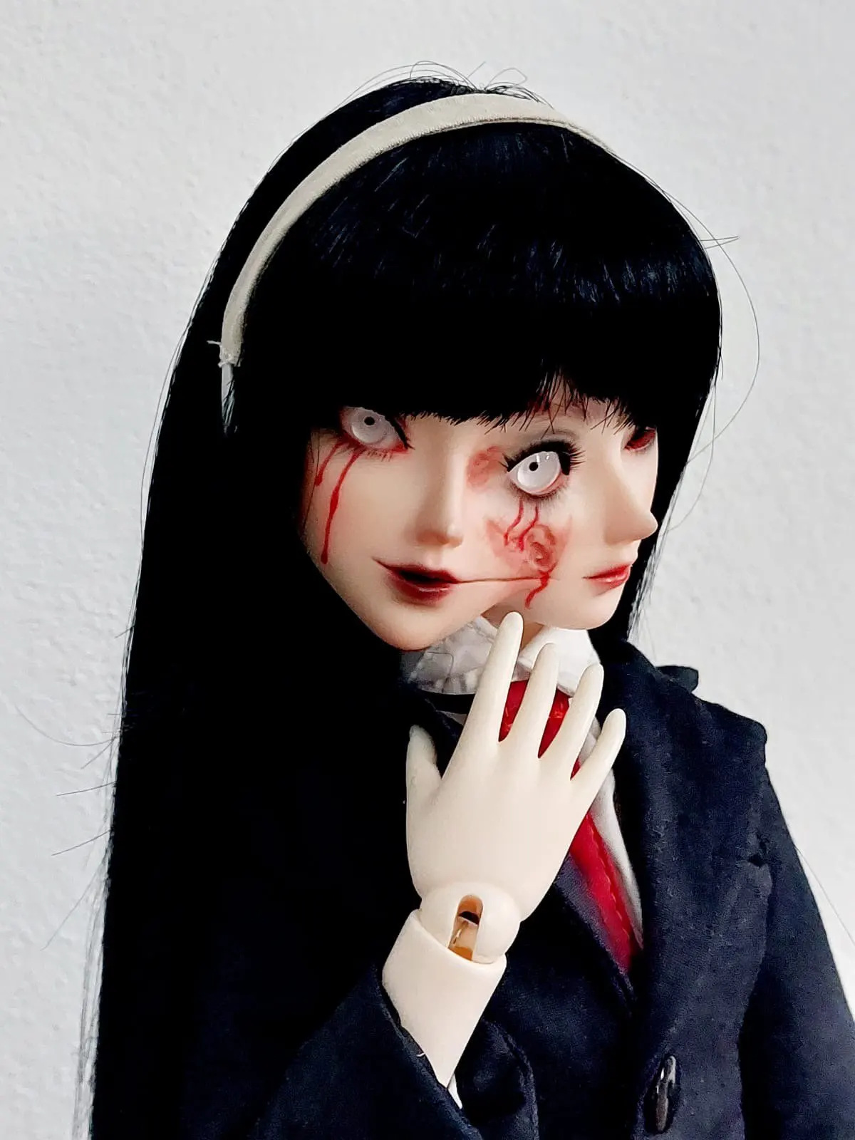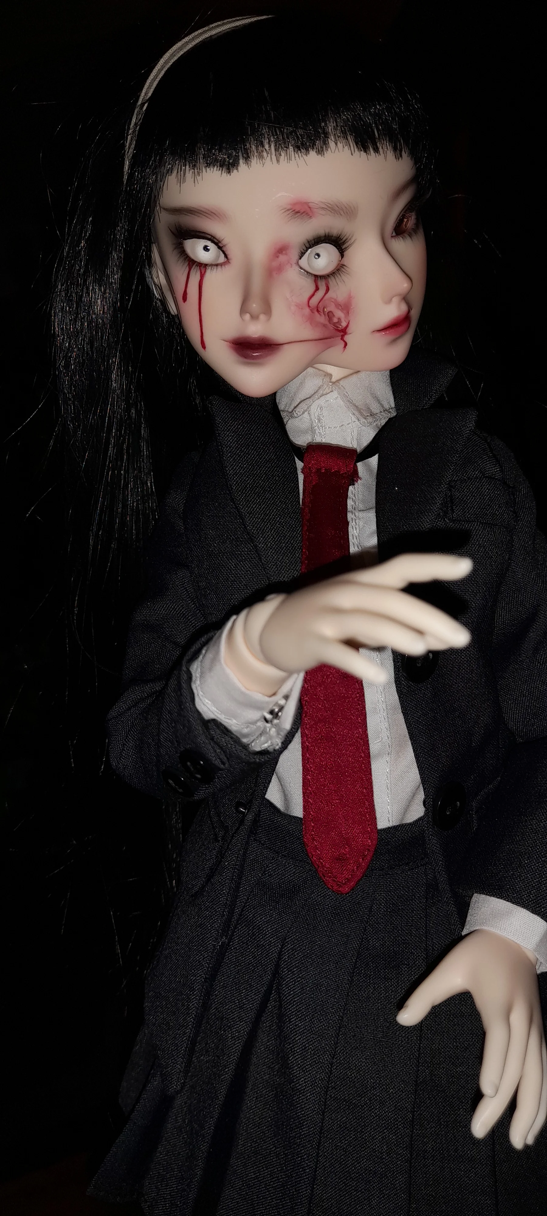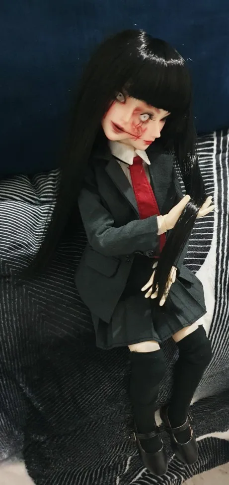 Я абсолютно люблю эту куклу. Если вы поклонник Junji Ito, то эта форма для лица для вас! Фантастическое лицо с невероятными глазами, чтобы сделать его потрясающим. Я выбрал полный комплект, и я рад, что сделал. Одежда очень красиво сшита. Куртка на подкладке. Обувь также включена.