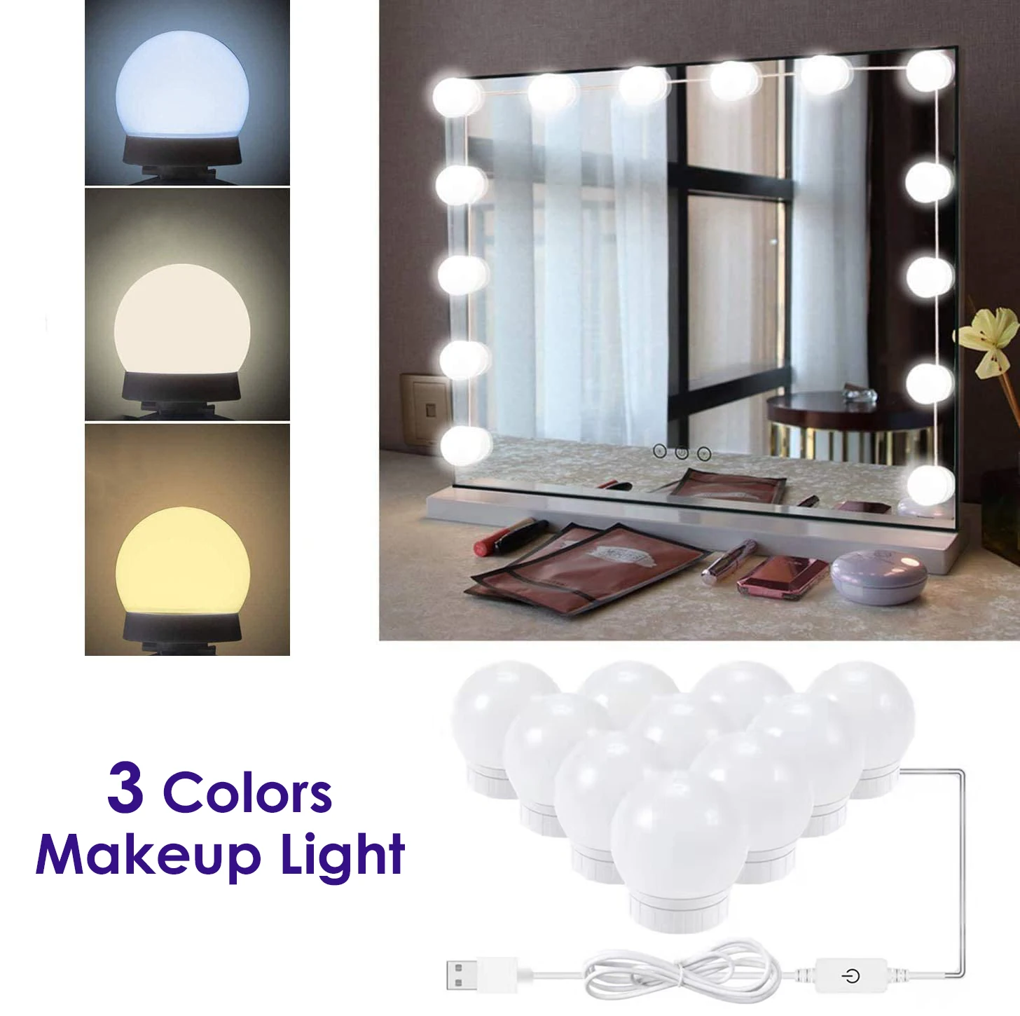 Популярный светодиодный светильник для зеркала для макияжа, 3 режима работы, приглушаемая лампа для туалетного столика, USB-ночник для зеркала для макияжа