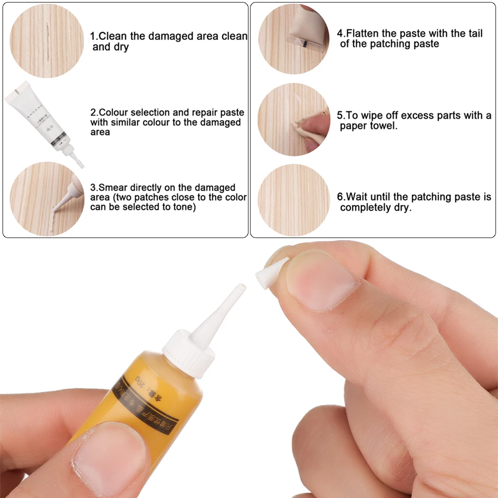 Описание:1. Легко отремонтировать трещины и щели на мебели и деревянных полах.2 портативных ремонтных инструмента, простота в использовании.3. Широко используется в различных древесных продуктах.4. Легко сушить, затянуть крышку после использования ручки.5. Мебель широко используется для обслуживания различных деревянных и кожаных уличных ламп