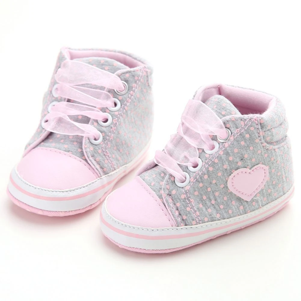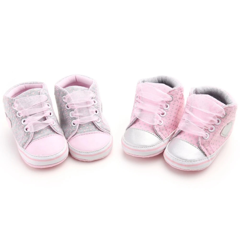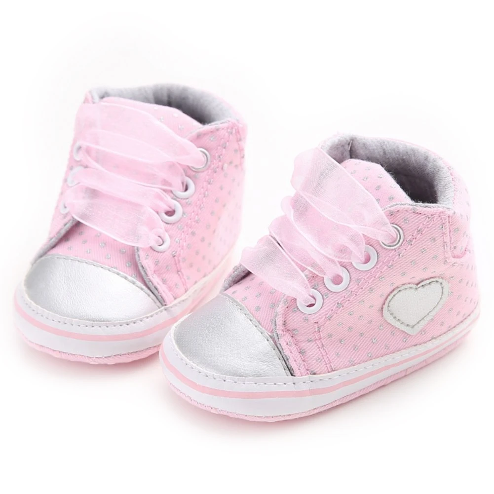 Детские Нескользящие кроссовки Jlong с высоким верхом, повседневная обувь из тюля, на шнуровке, обувь для детской кроватки, для девочек 0-18 месяцев, с сердечками, обувь для начинающих ходить