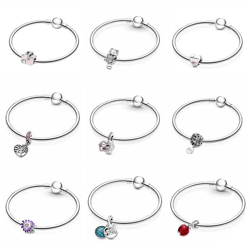 Браслеты MC из натуральной серебристой ткани для женщин, модель 2021, яркие бусины, подходят для модных оригинальных бусин с цветами, собакой, кошкой, сердцем