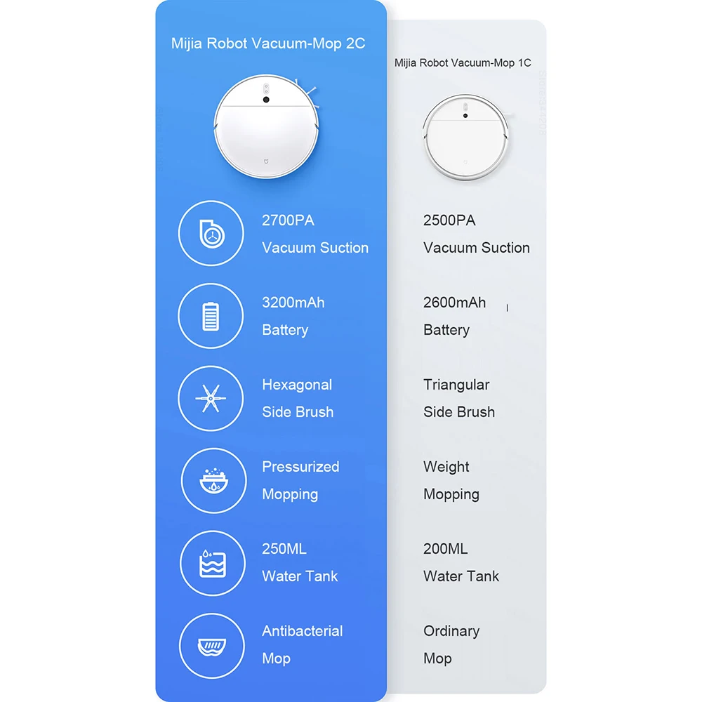 Пылесос Xiaomi Mijia Mi 2C для дома, умный робот-пылесос с функцией подметания и стерилизации, Wi-Fi