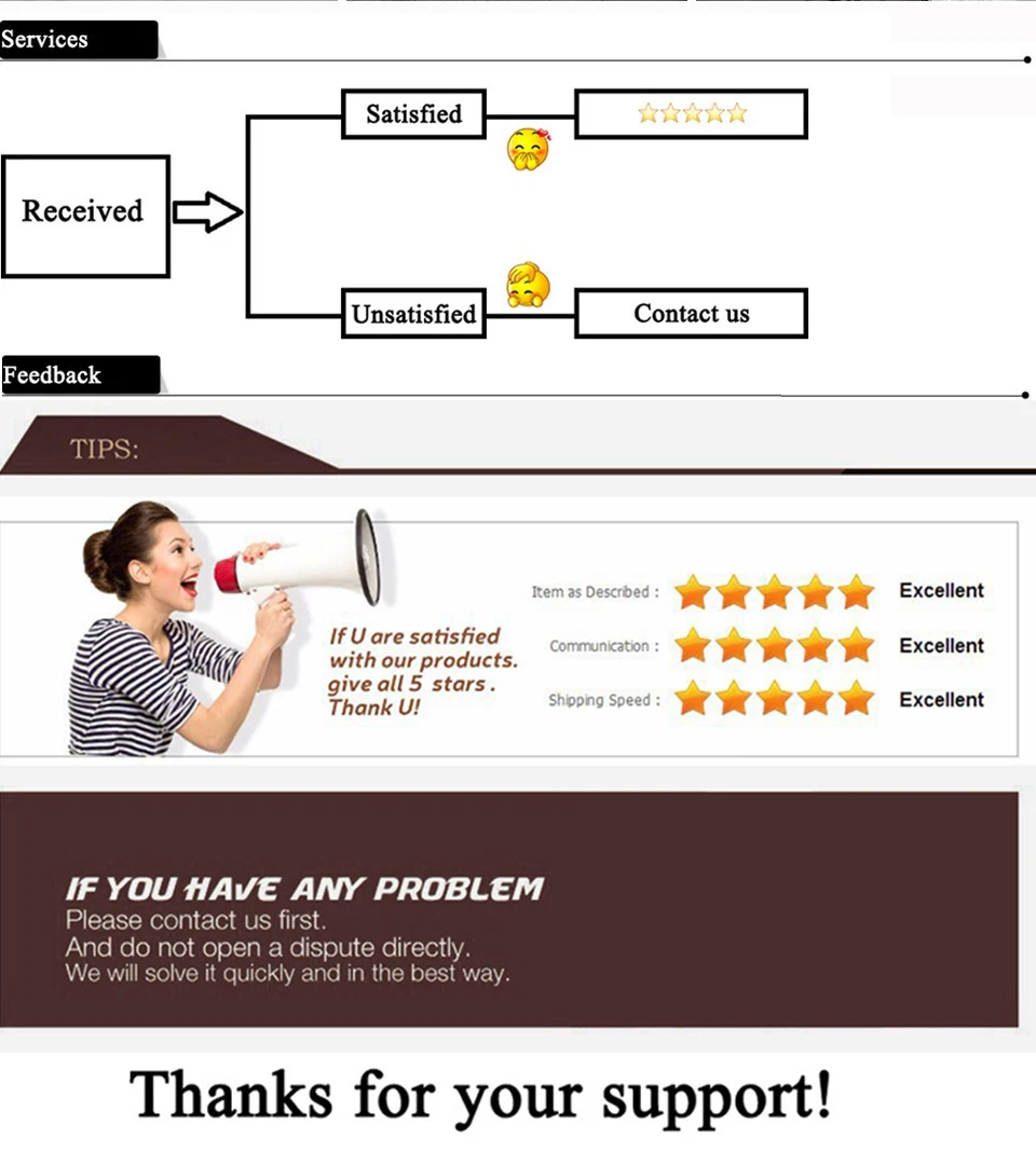 Пожалуйста, свяжитесь с нами, если продукт, который вы получите, не такой, как вы ожидали
