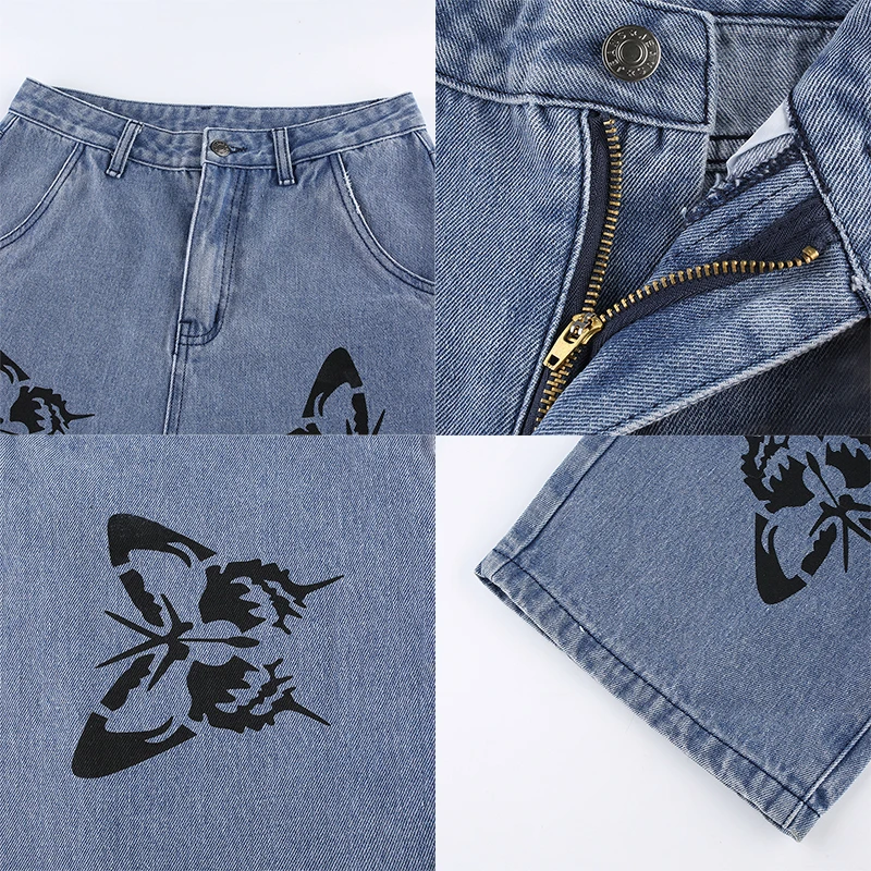 Женские джинсы в стиле High Street Y2K, джинсовые брюки с принтом бабочки, Модные свободные джинсы с высокой талией, прямые мешковатые брюки, джинсы для мам