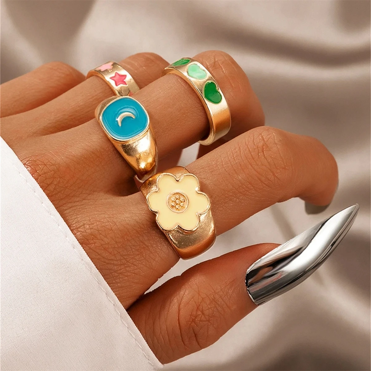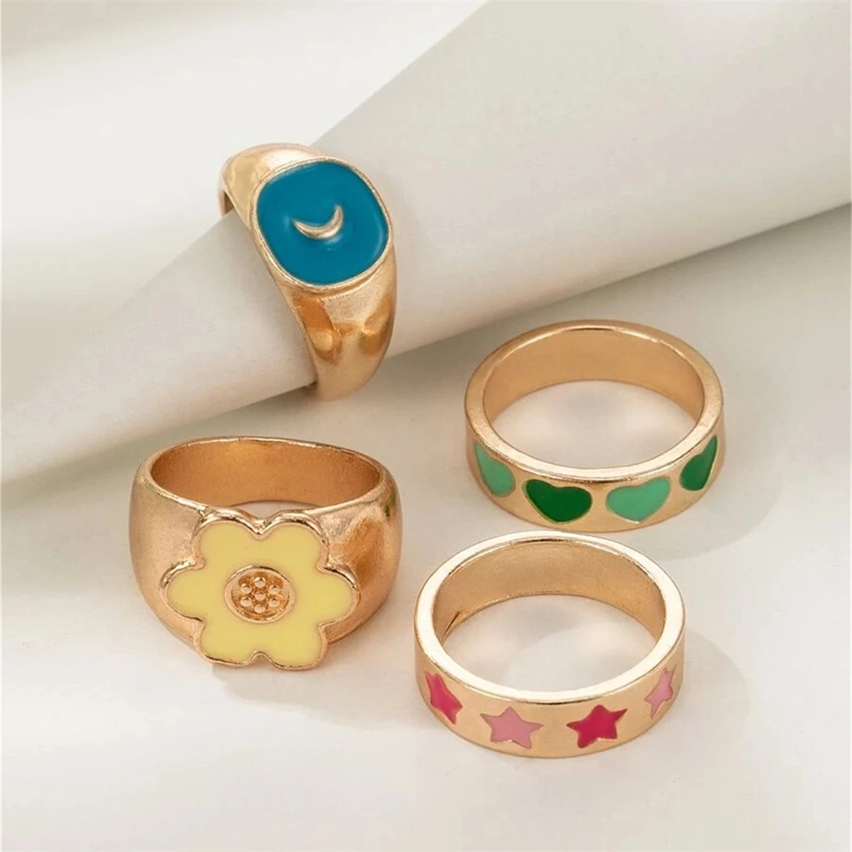 кольца для мужчин кольцо женское Модное цветное кольцо для костюма, модное индивидуальное кольцо с капающим маслом, мечта, любовь, луна, звезда, цветок, набор из 4-х предметов, кольцо из нержавеющей стали