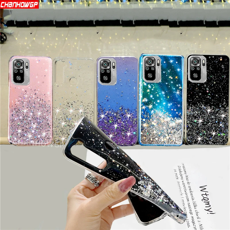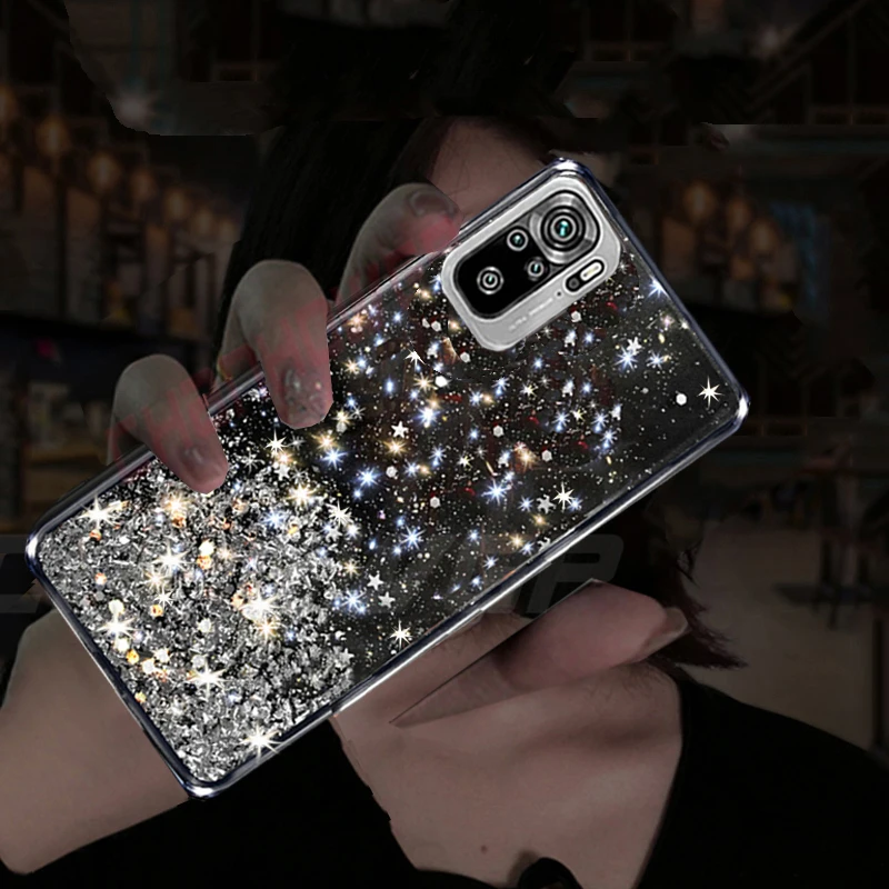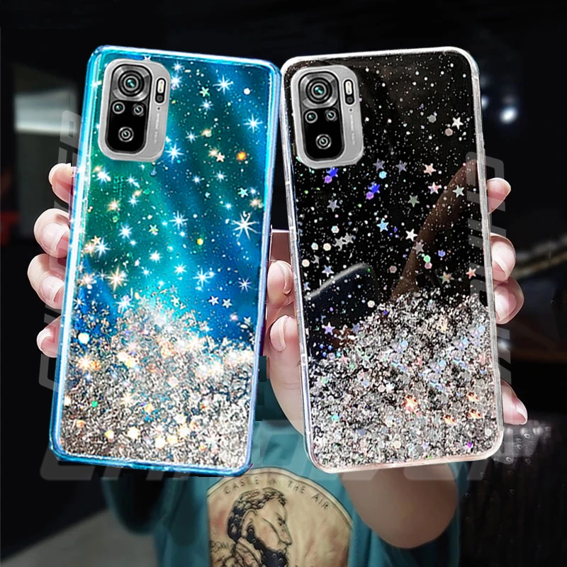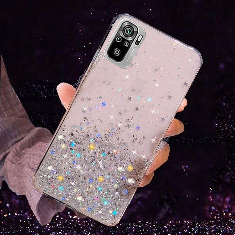 Чехол для Redmi Note 10 Pro, Блестящие Блестки, мягкие силиконовые чехлы для телефонов Xiaomi Redmi Note 10 Pro, 10S, 10T, искусственная кожа, 4G, чехол из ТПУ