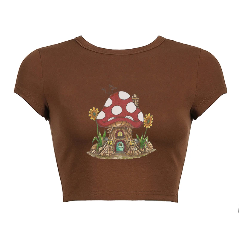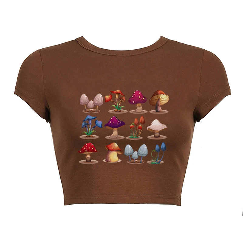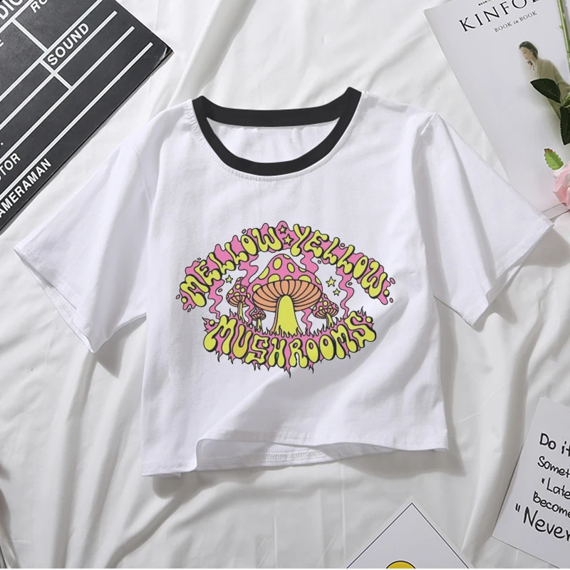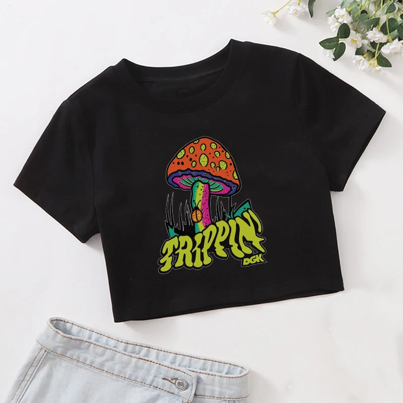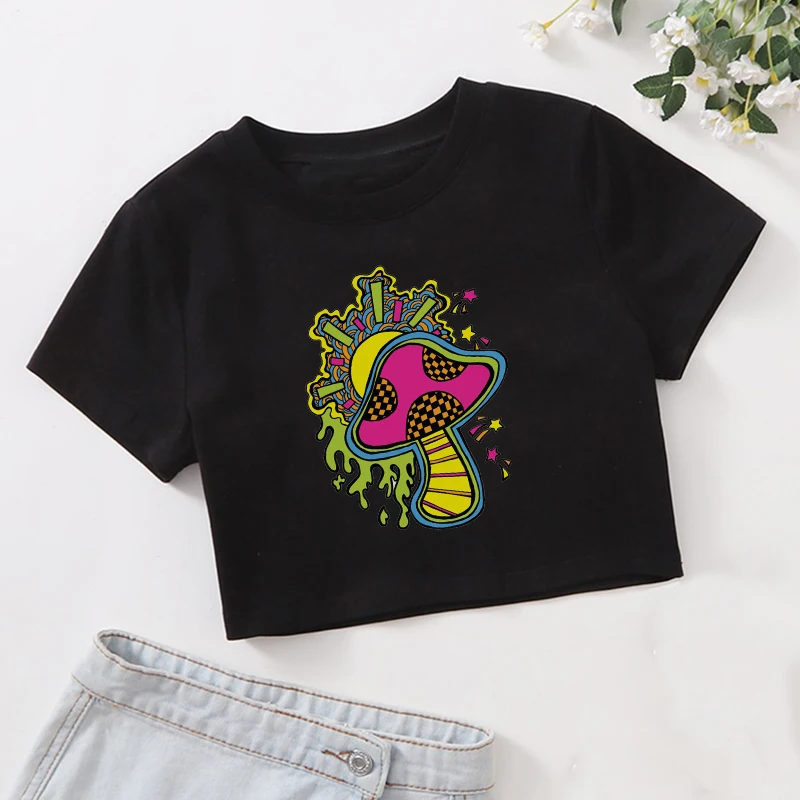 Кроп-Топ женский с принтом грибов, пикантный готический черный топ с мелким желтым принтом, вечерняя приталенная одежда в стиле панк, Y2k, в винтажном стиле