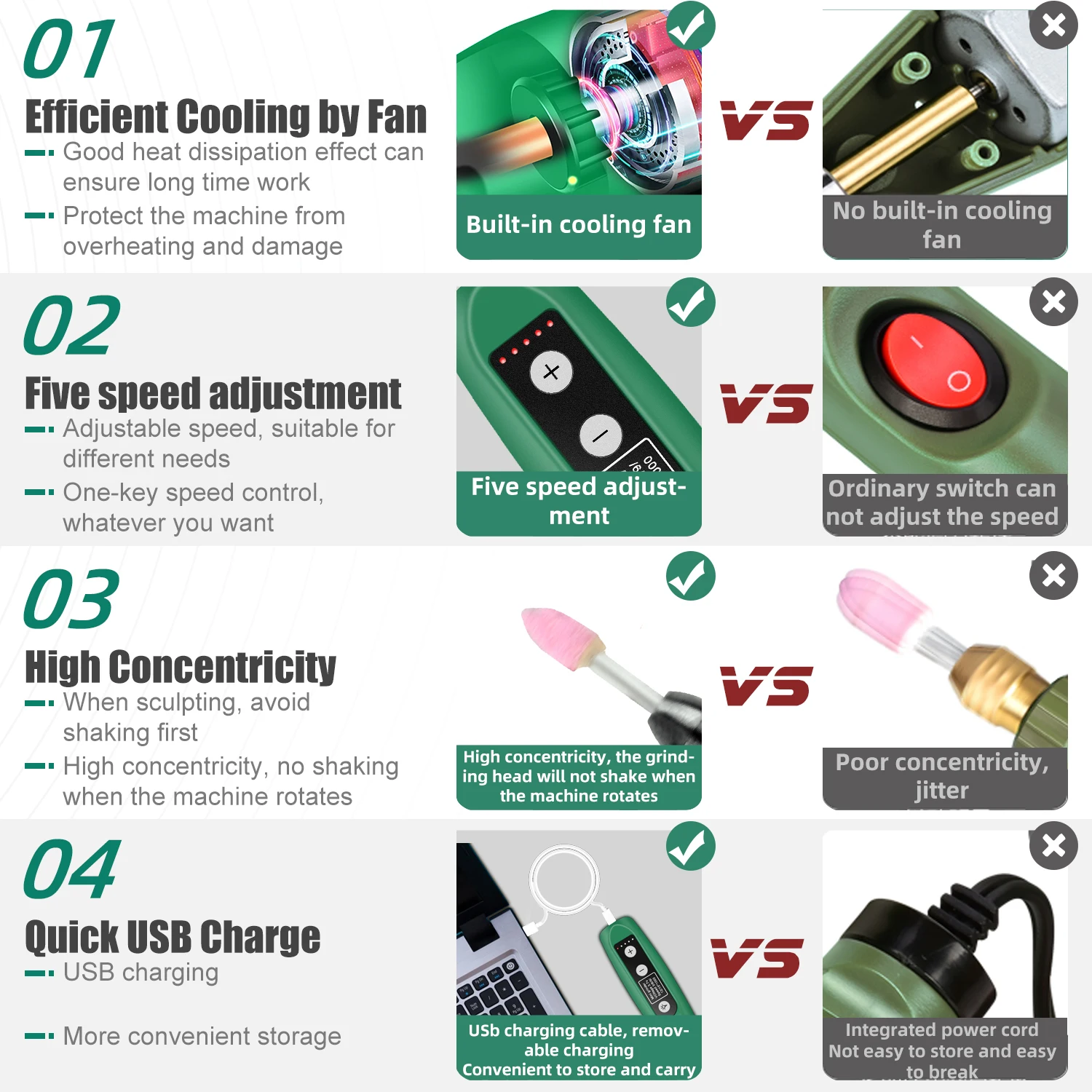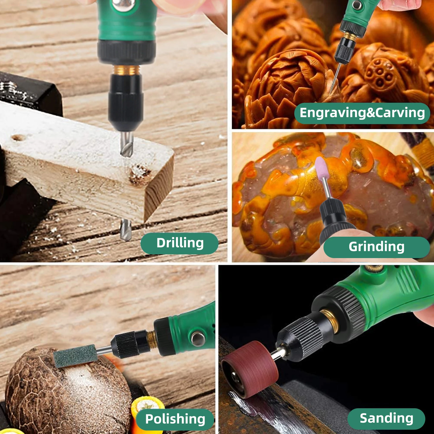 1. Идеальная шлифовальная машина-идеальная электрическая шлифовальная машина для резки, гравировки, фрезерования, шлифования, полировки, удаления и сверления. Набор гравировки шлифовальной машины необходим для самостоятельной резьбы и шлифования.2. Подходит для Нефритового агата, ядерной резьбы, резьбы по дереву, шлифовки алюминиевой пластины, тонкой медной доски, пластиковой доски, ДСП, печатной платы, эпоксидной доски.3. Прочный и надежный-небольшого объема, светильник вес, легко взять с собой, удобная рукоятка из биметаллического, лучше контролировать предлагает при бурении, удобно в использовании.Для безопасного использования:1. Когда вы закончите использование устройства, выключите двигатель и убедитесь, что все движущиеся части полностью остановились.2. Прежде чем использовать дополнительные аксессуары, не включенные в этот набор, всегда сравнивайте максимально допустимые RPM этого конкретного аксессуара с RPM этого инструмента.3. В чехол o электрические или механические неисправности, немедленно выключите инструмент.4. Не активируйте переключатель при смене аксессуаров.5. Никогда не используйте замок вала, когда плата работает.6. Убедитесь, что размер цанги соответствует размеру вала аксессуара.7. Храните инструмент в местах, где температура не будет превышать 50 градусов Цельсия.