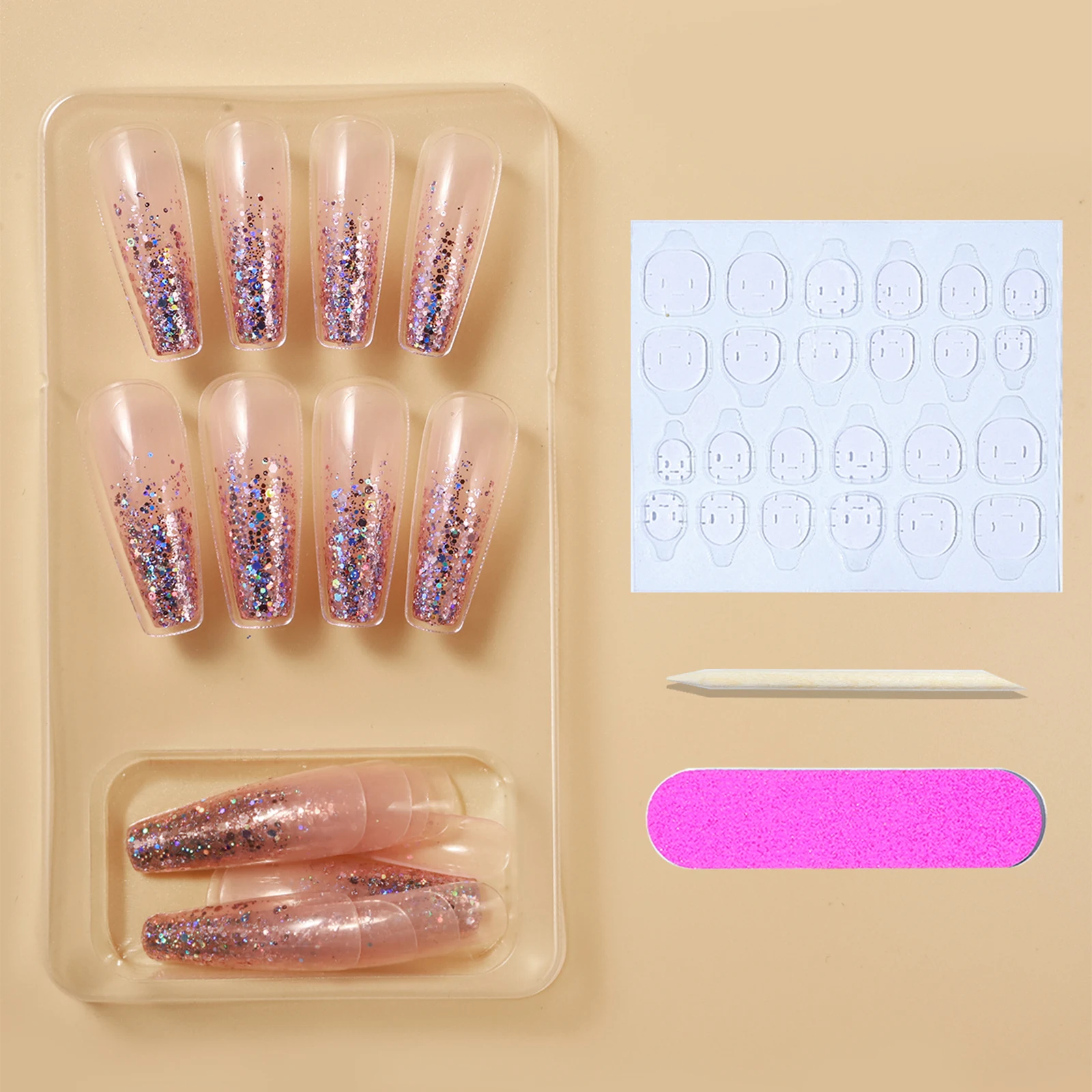 Блестящие сверхдлинные накладные ногти балерины носимые гробные накладные ногти полное покрытие накладные ногти с дизайном Маникюрный Инструмент