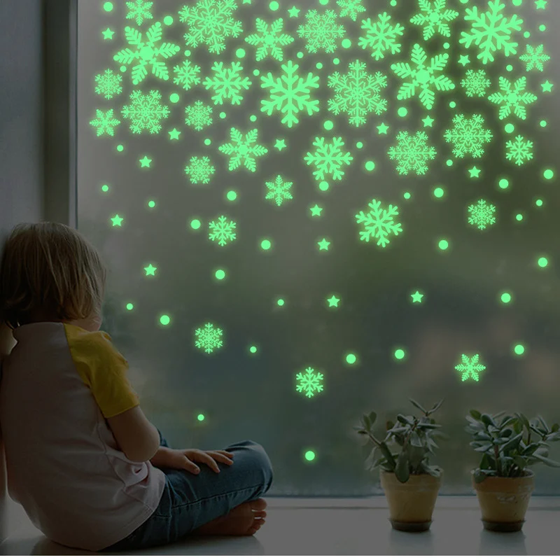 Светящиеся фотообои 50 шт., подарок для детской комнаты, спальни, Рождественское украшение для дома, настенные стикеры снежинки Navidad 2022