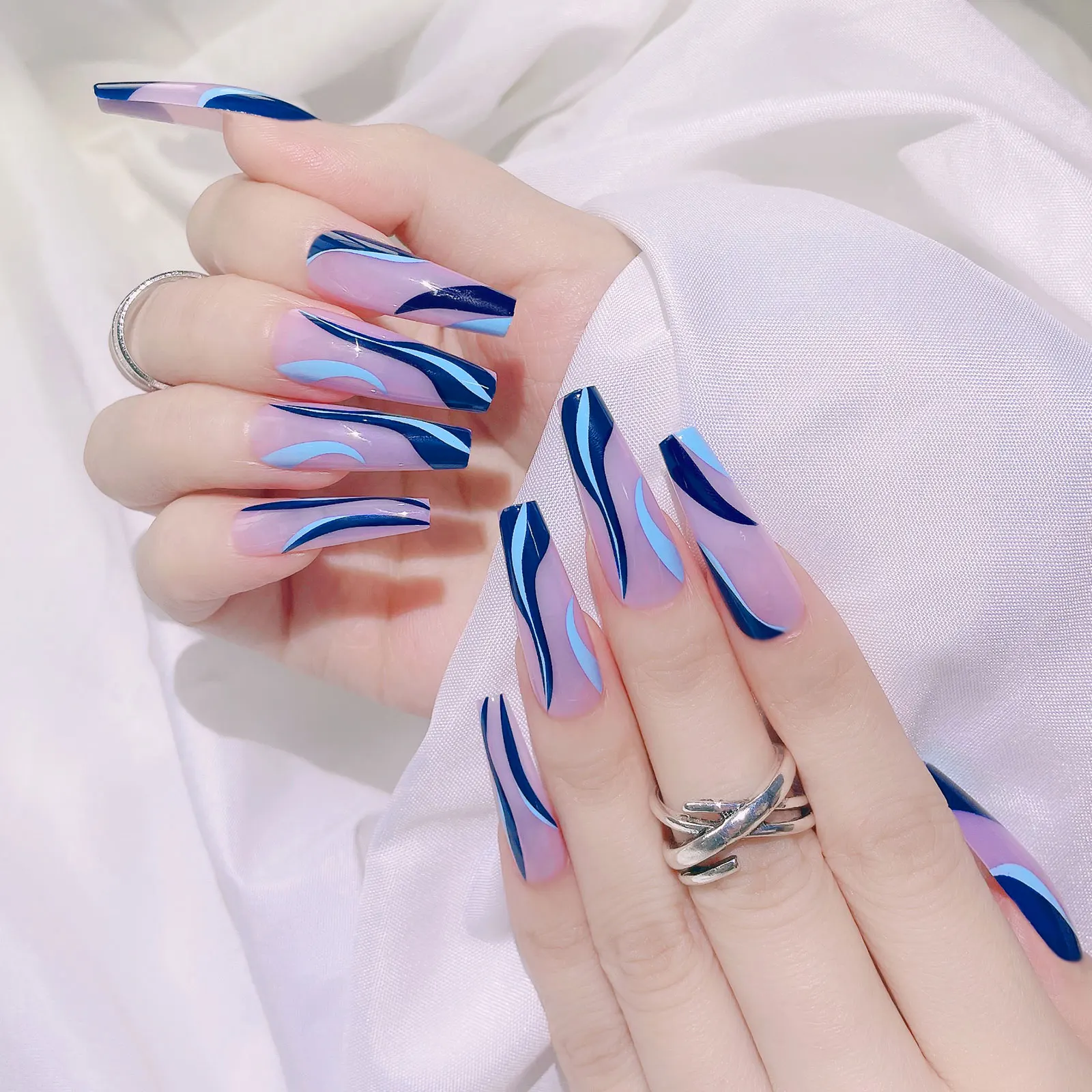 Номер моделиExtra Long Blue Wavy False Nails