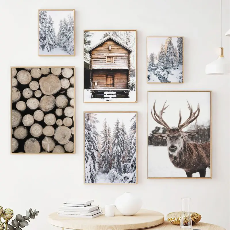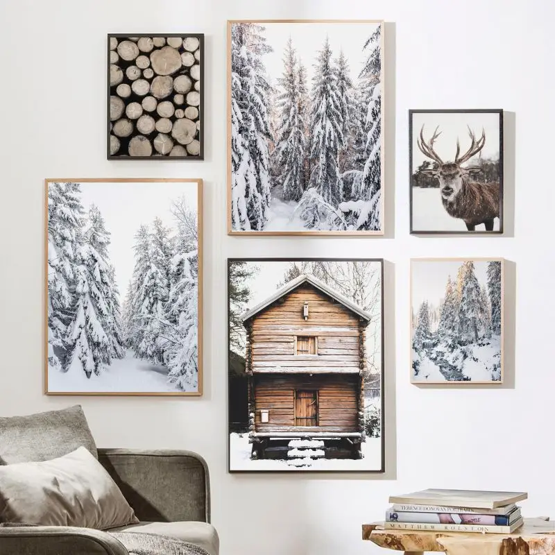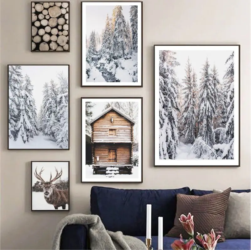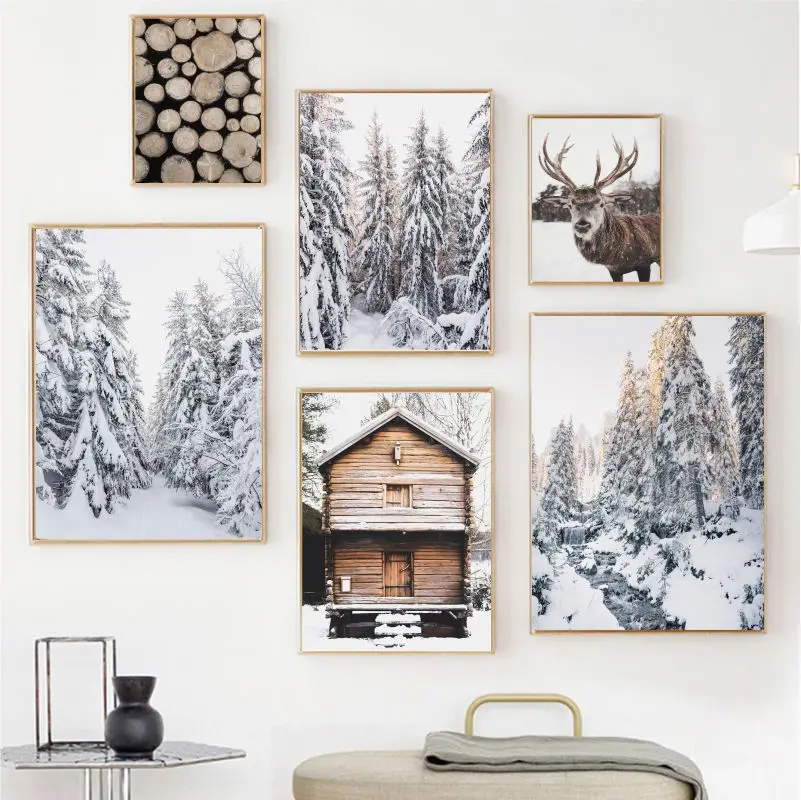 Зимний Снежный лес, искусственная Картина на холсте, скандинавский пейзаж, плакаты и принты, Рождественский Декор, картина для домашней комнаты, настенное искусство