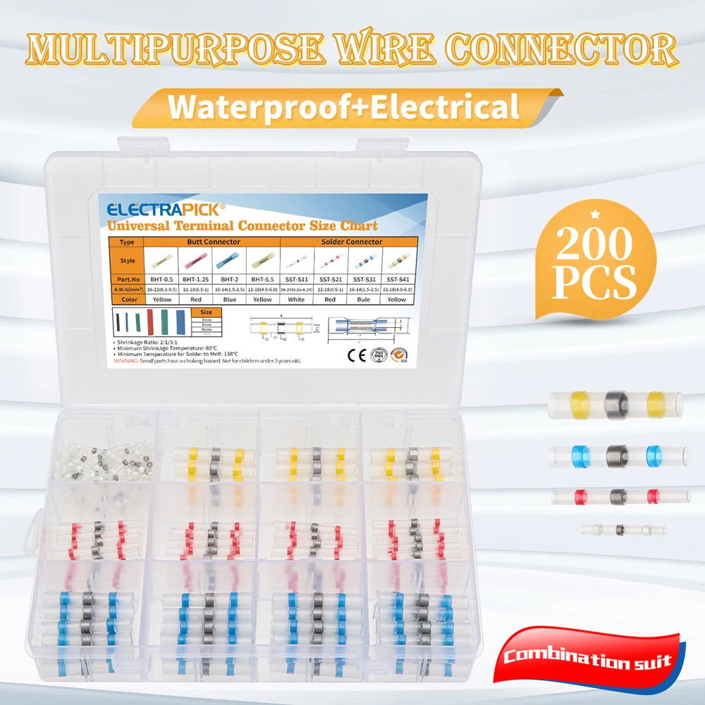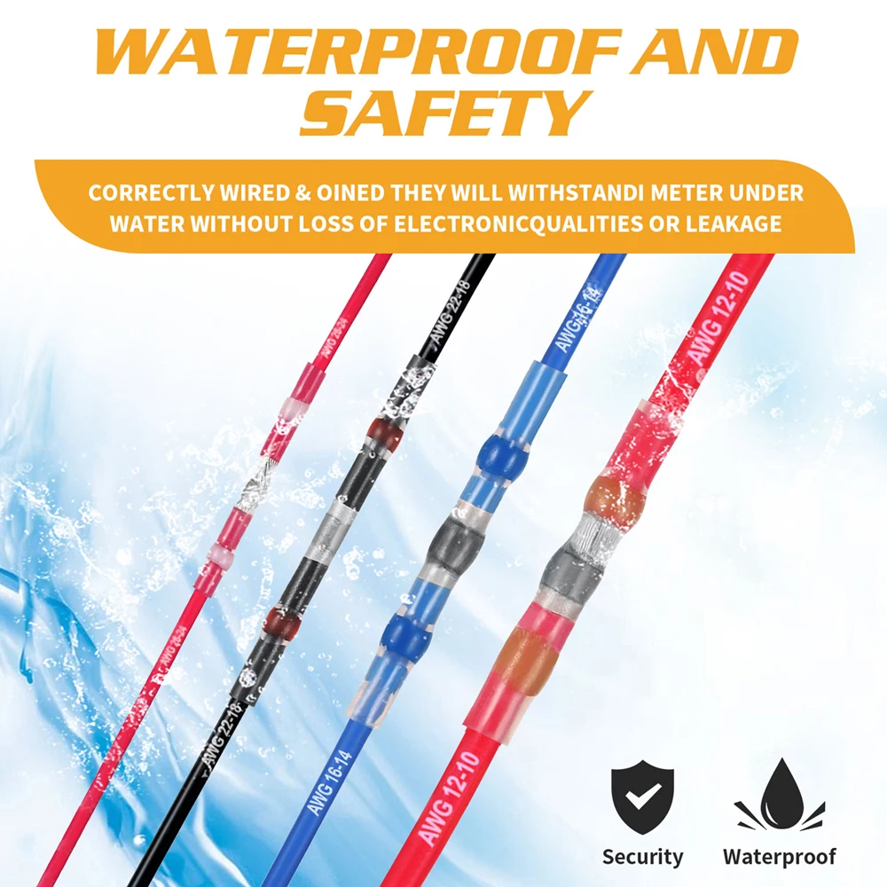 5. Отличные характеристики: Паяные соединители ELECTRAPICK обладают отличными водонепроницаемыми и герметичными эффектами. Каждый Соединитель имеет термоплавкий водонепроницаемый клей на обоих концах, а также усадку термоусадочного, двухслойного уплотнения, может лучше защитить провода от влаги