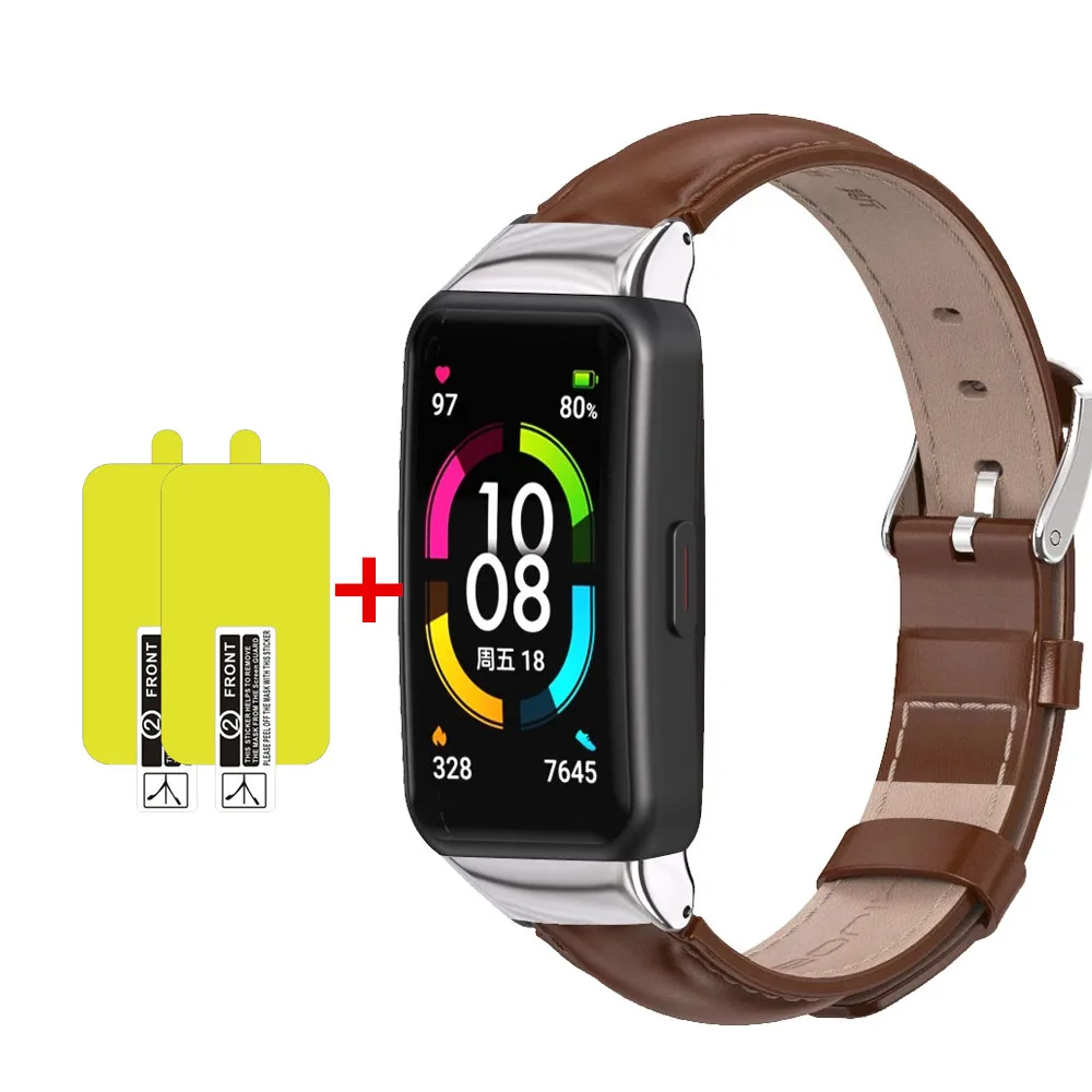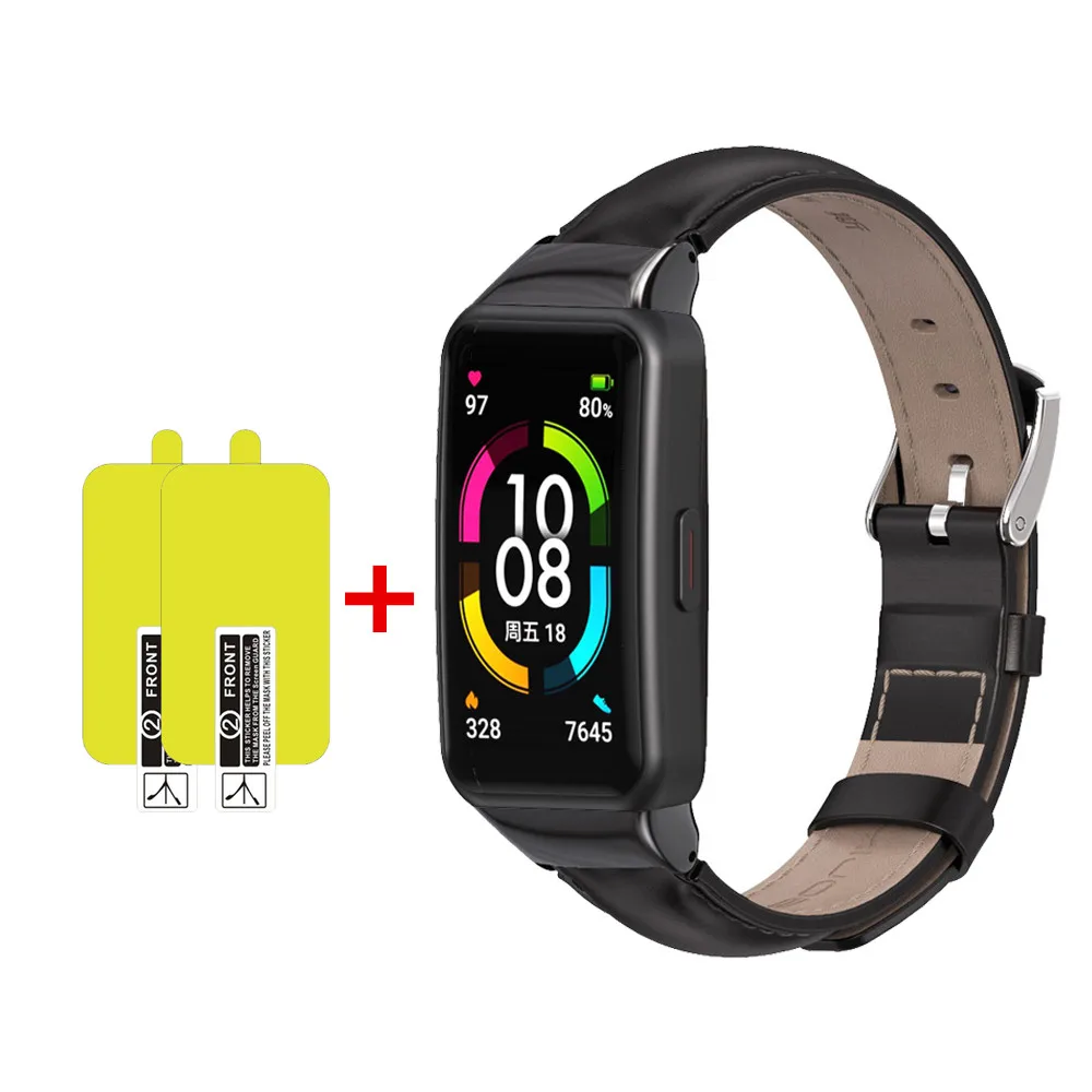 Ремешок из натуральной кожи для смарт-часов Huawei Honor Band 6, браслет для Honor 6, сменный ремешок с защитой экрана
