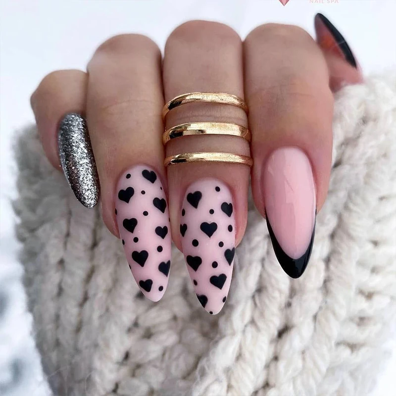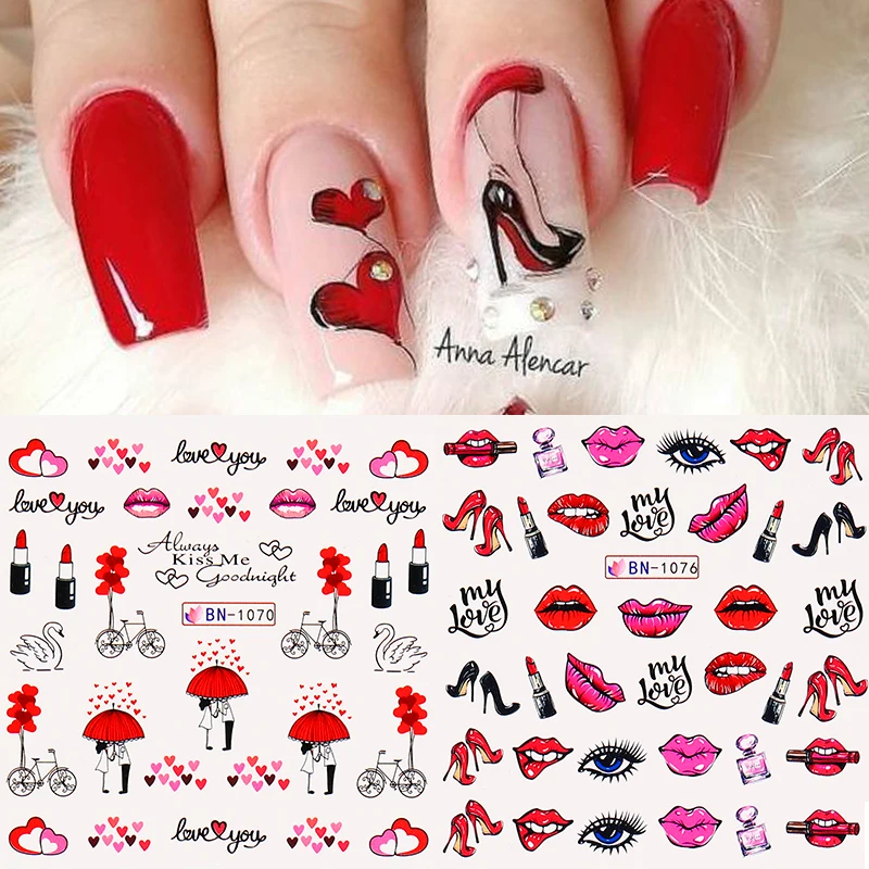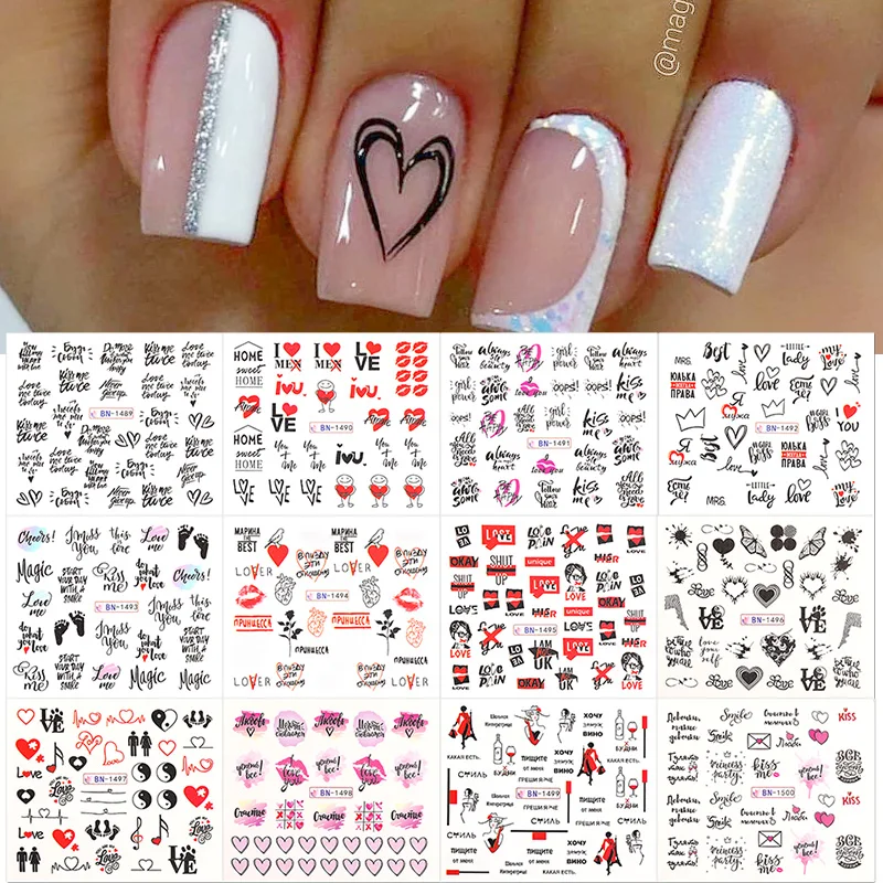 Наклейки на ногти в виде сердца на День Св. Валентина, черные и белые буквы, дизайнерский слайдер для искусственных 3D наклеек для ногтей, аксессуары