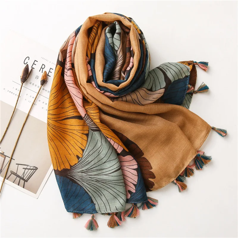 2021Nieuwe Dames Luxe Lente Sjaal Ретро богемный кешью принт Crme z...