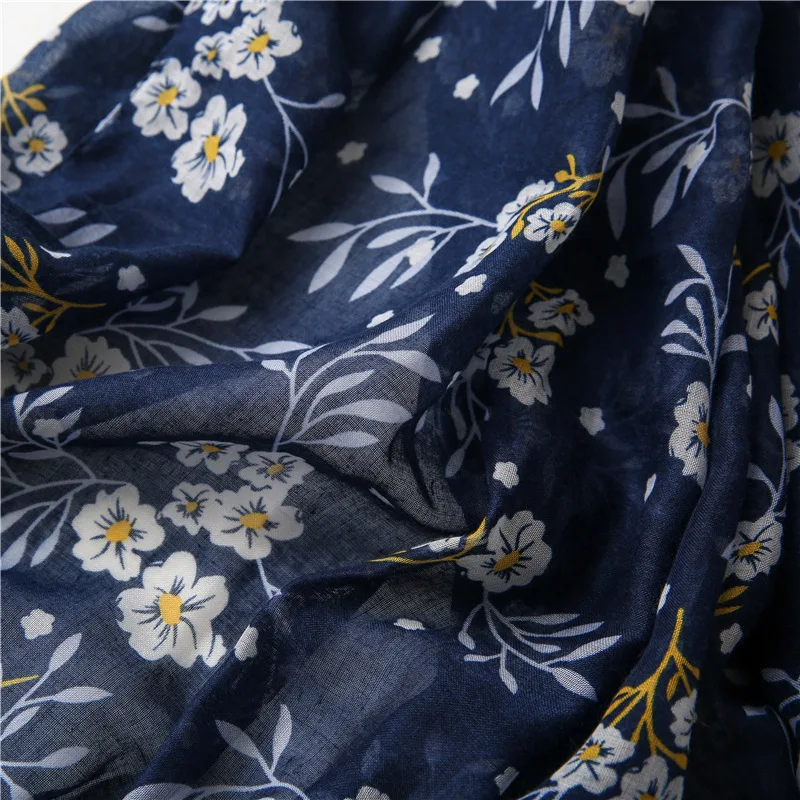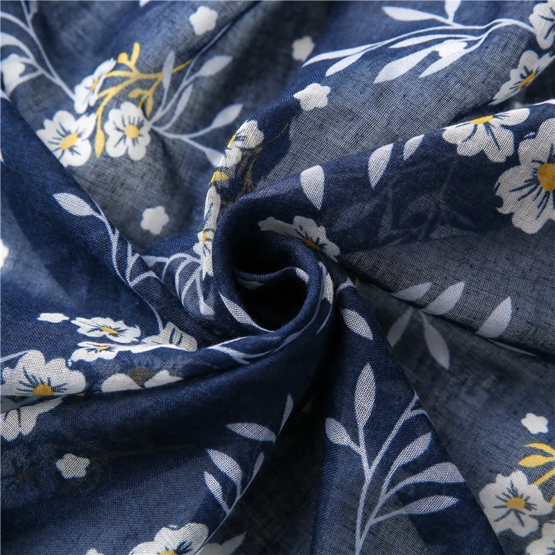 Женский хлопково-льняной шейный платок с цветочным принтом, модный ...