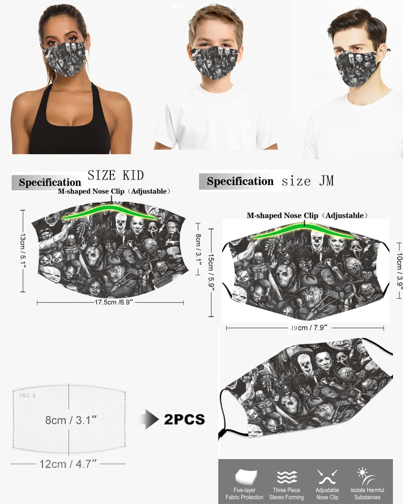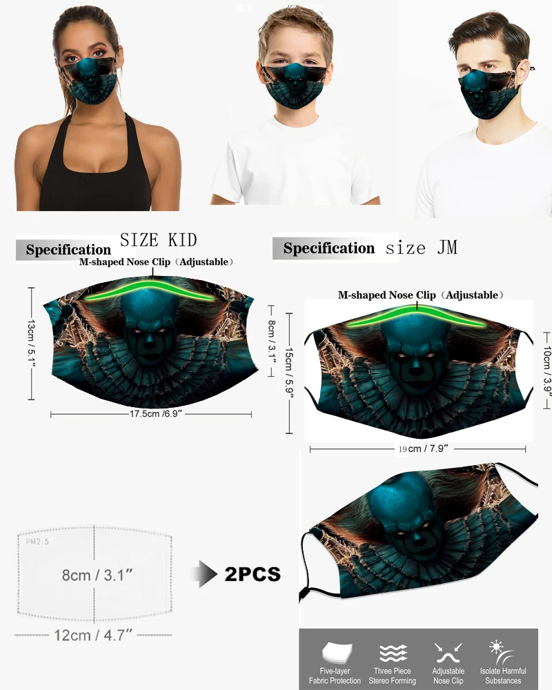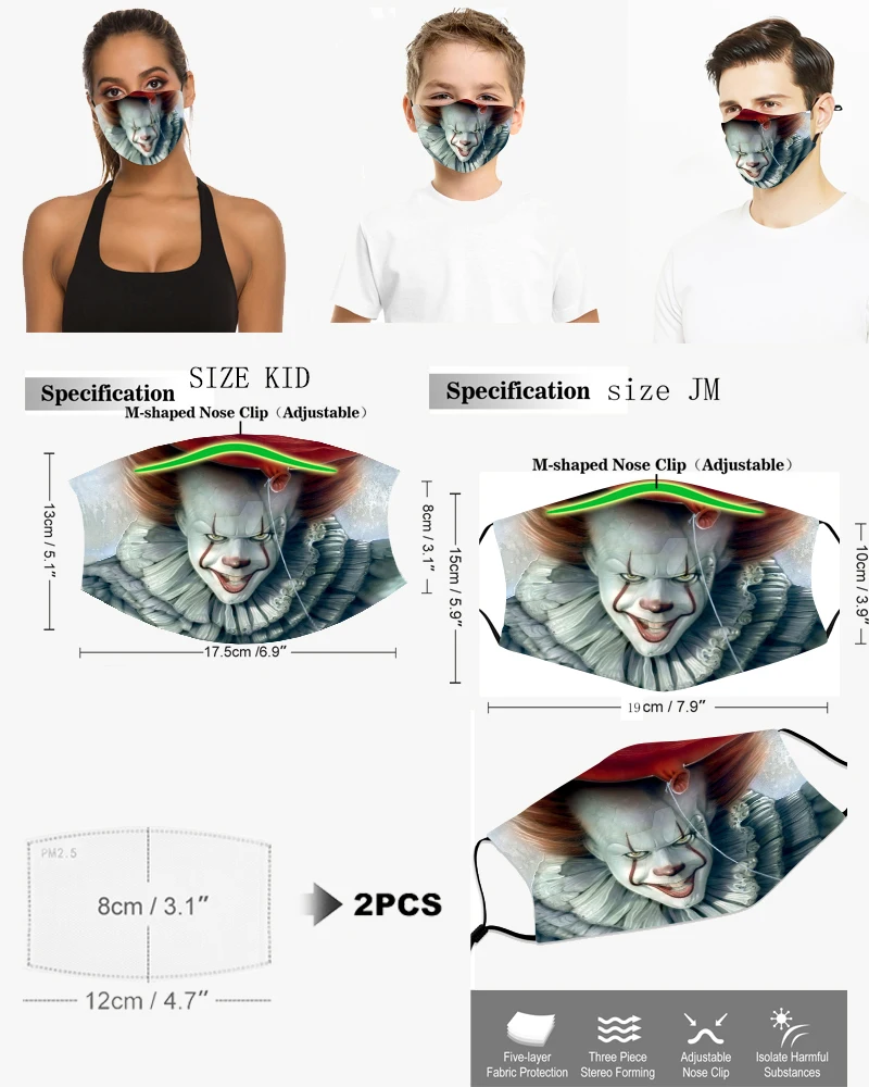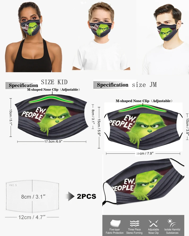 Модная маска для взрослых с демоном, клоуном, зеленая Рождественская маска с героями мультфильмов, детская маска для ролевых игр, моющаяся многоразовая Пылезащитная маска