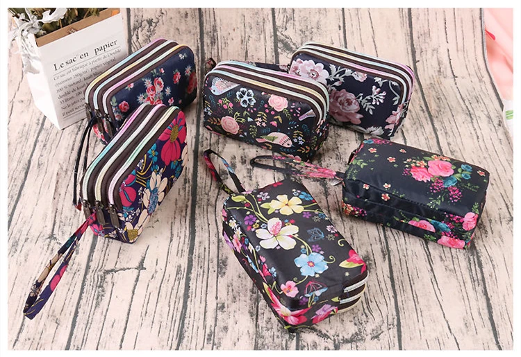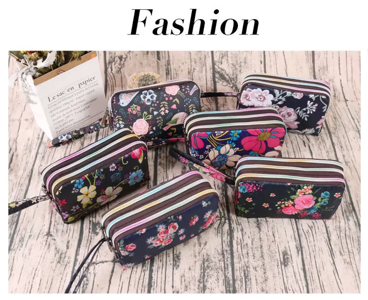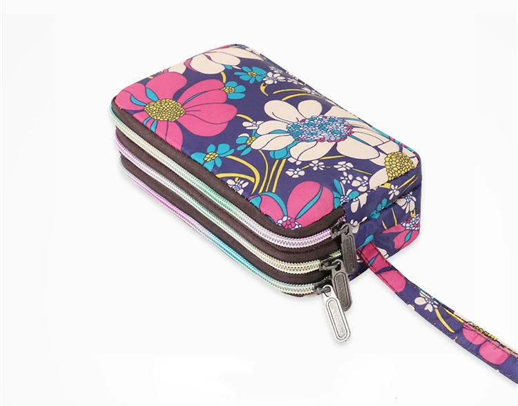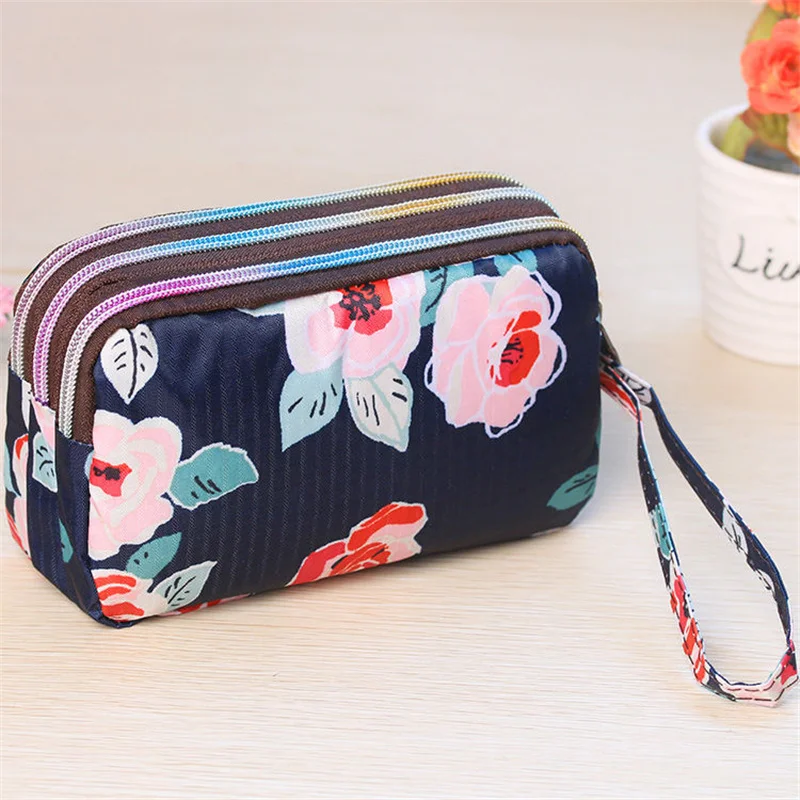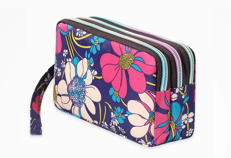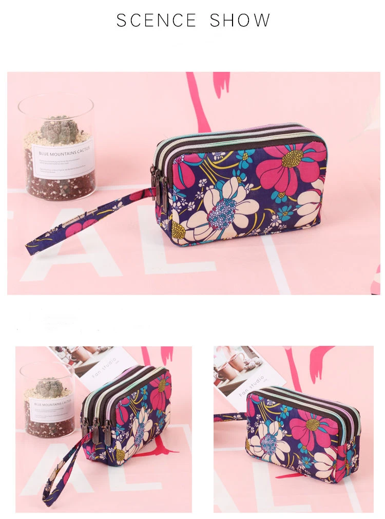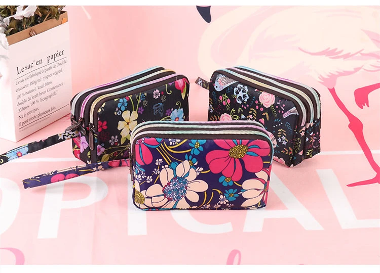 3-слойная Портативная сумка для хранения на молнии, плотный нейлоновый кошелек с цветочным рисунком, женская сумка для хранения