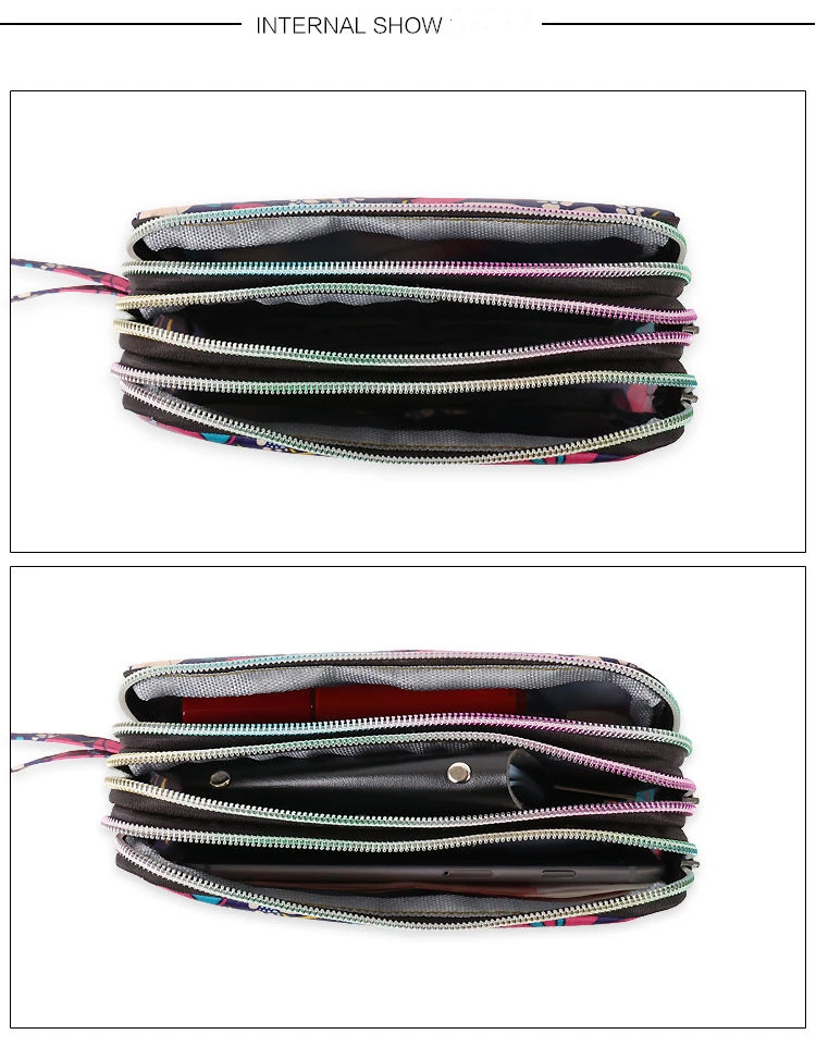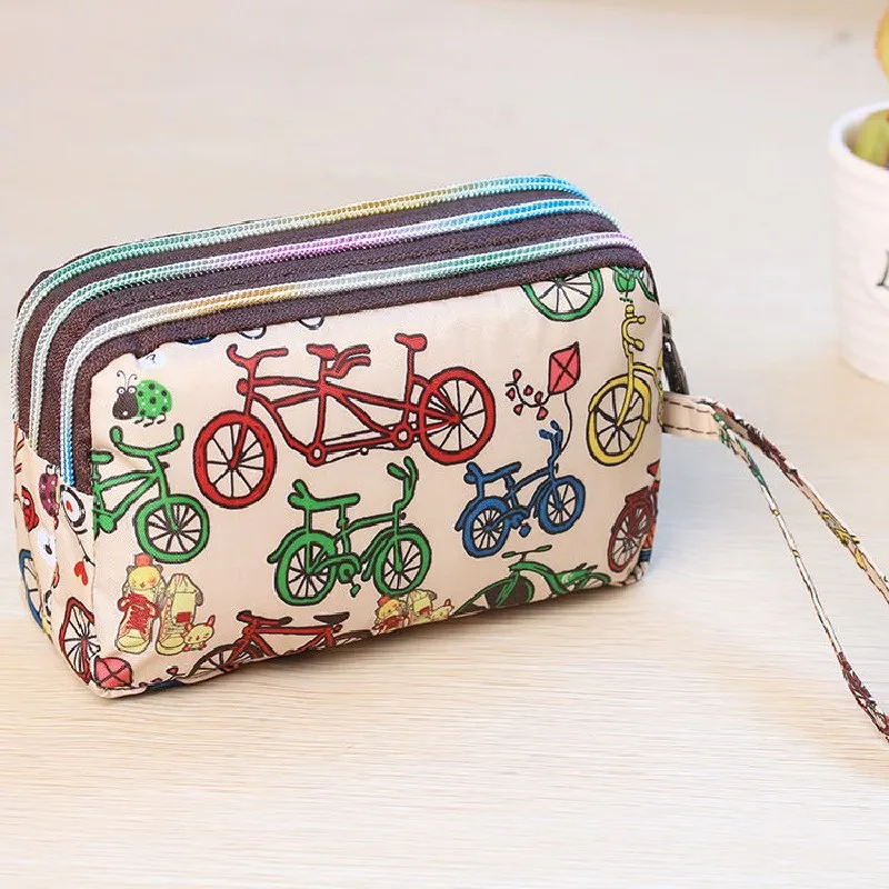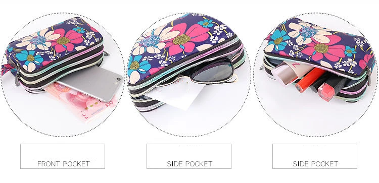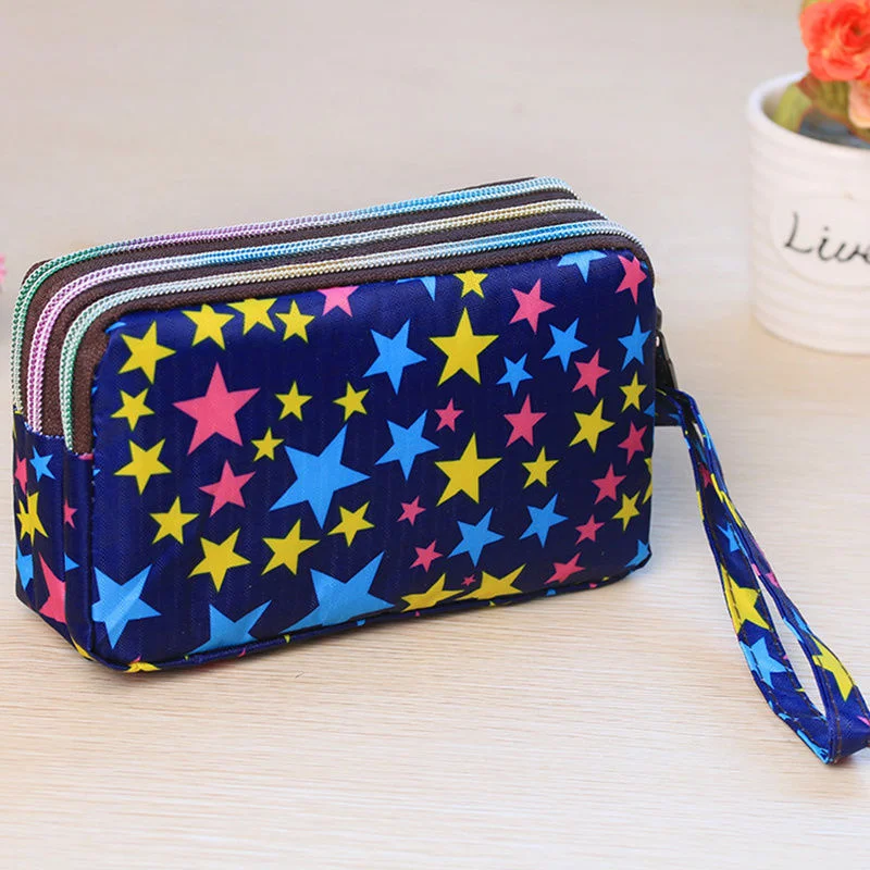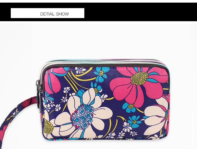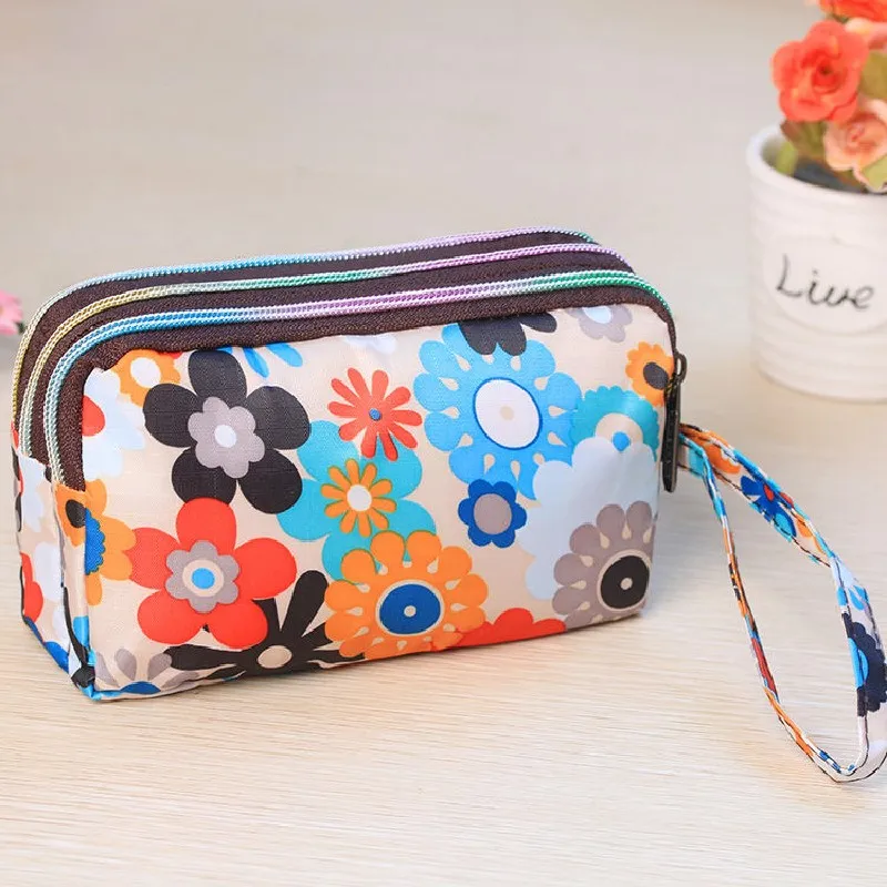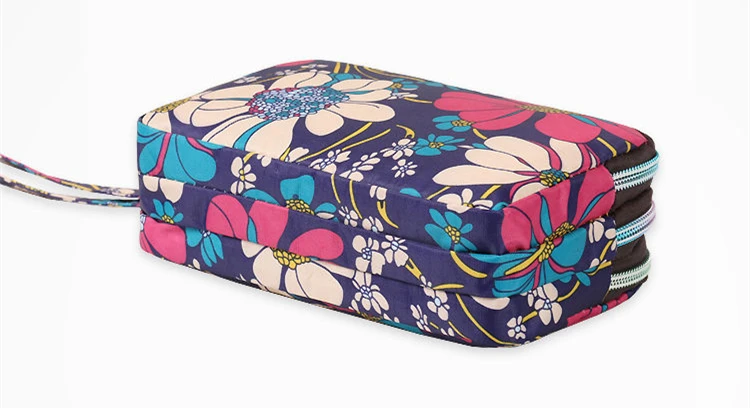 3-слойная Портативная сумка для хранения на молнии, плотный нейлоновый кошелек с цветочным рисунком, женская сумка для хранения