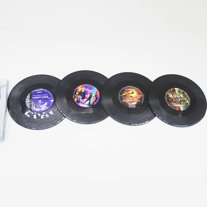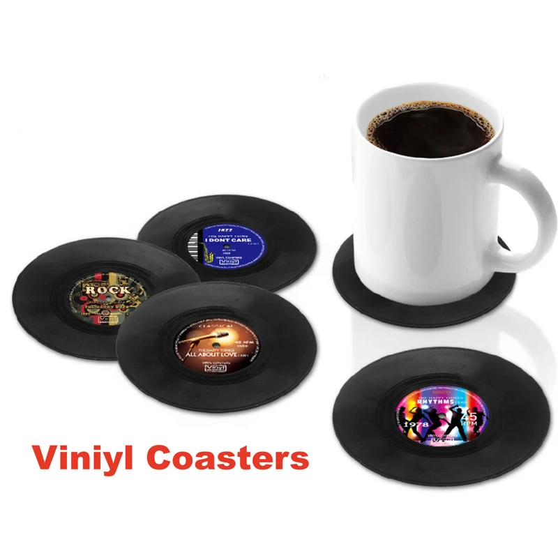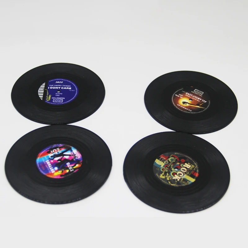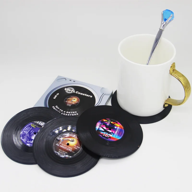 4 шт. виниловые подставки для напитков музыкальные подставки Ретро Запись диска Подставка под кружку коврик креативное украшение для бара Дома Офиса