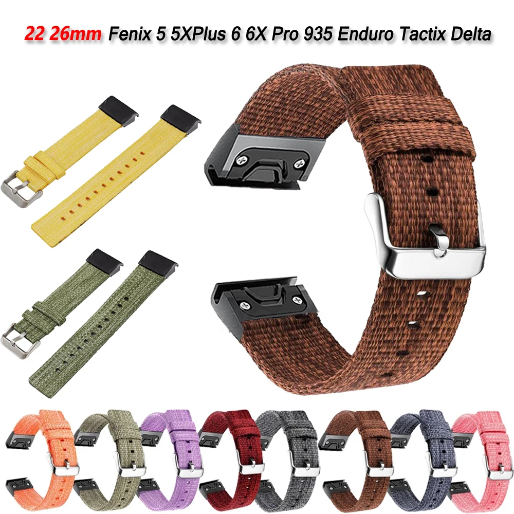 Ремешок для наручных часов Garmin Fenix 6 6X Pro 5X 5 Plus 3HR 935 945 S60 Enduro, нейлоновый быстросъемный браслет для часов, 22 26 мм
