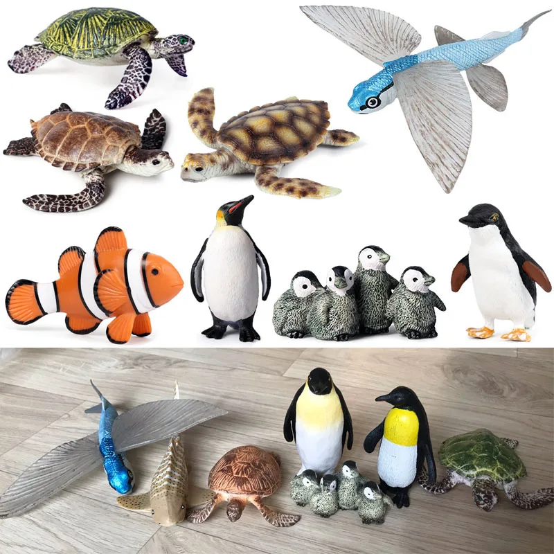 Новая модель искусственных животных, модель пингвина, морская черепаха, рыба, дикие животные, фигурки героев, развивающие игрушки для детей