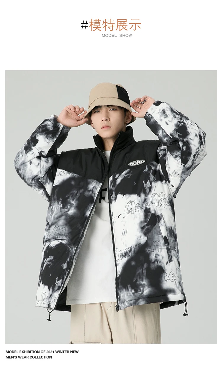 Куртка мужская зимняя, ветрозащитная, с принтом, в стиле хип-хоп