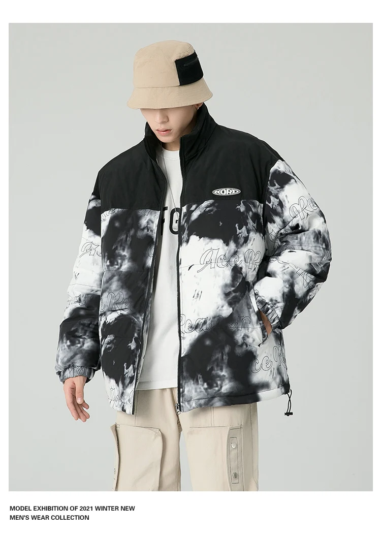 Пуховик GlacialWhale, мужская зимняя куртка, пальто с рисунком тай-дай, ветрозащитный, негабаритный, в стиле хип-хоп, уличная одежда, водонепроницаемые куртки для мужчин