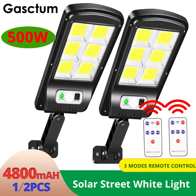 Мощная уличная Светодиодная лампа на солнечной батарее, 500 Вт, 12 шт., 4800 мАч, уличная садовая лампа с датчиком, водонепроницаемая лампа с пассивным ИК датчиком движения, фонарь с солнечной батареей