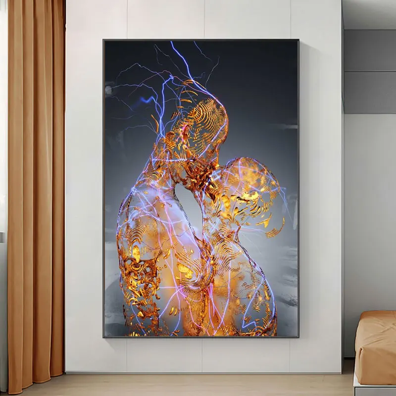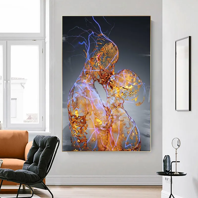 Абстрактная Металлическая Статуя пар художественные принты на холст...