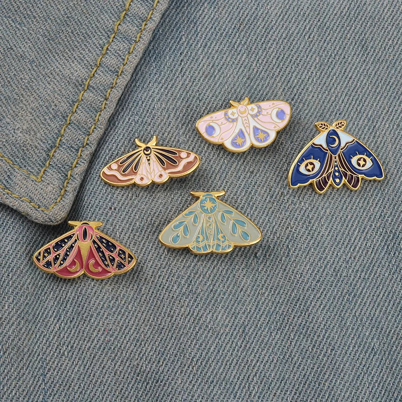Булавка с эмалью в виде бабочки, моли, звезды и Луны, ретро насеком...