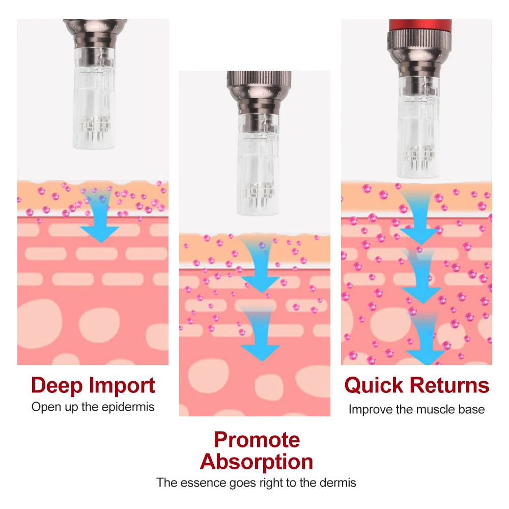 Не нужно покупать новый каждый раз. Просто замените иглу. Длина иглы регулируется от 0,25 мм до 2,5 мм. Удобнее обрабатывать узкие области, такие как нос, вокруг глаз или рта. Кроме того, скорость вибрации может контролироваться в 5 уровней.