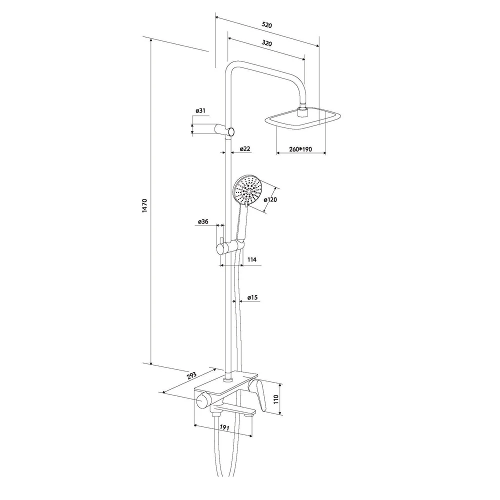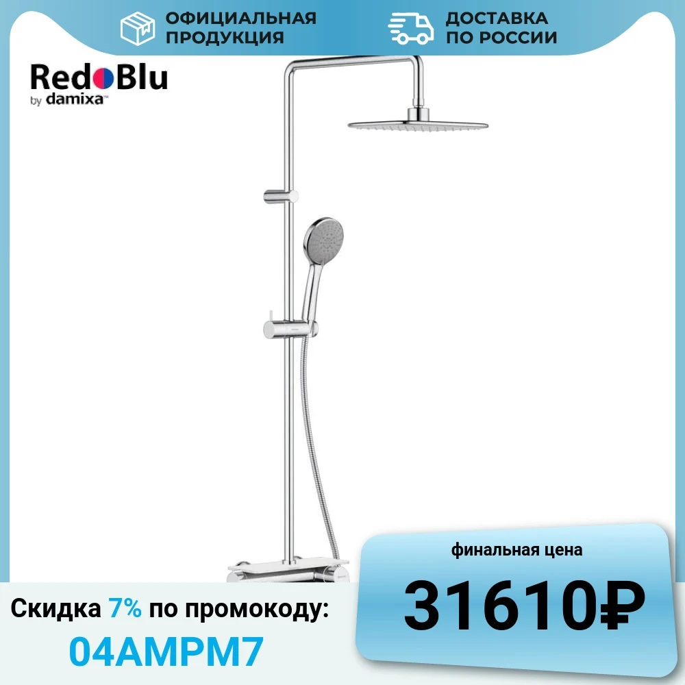 Душевая система RedBlu by Damixa Origin Bit 977720000, со смесителем-полкой: верхний душ 260х190, ручной душ 120, 5 режимов