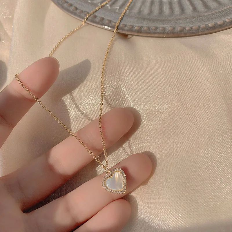 Цепочка с подвеской в форме сердца с опалом, золотистого цвета