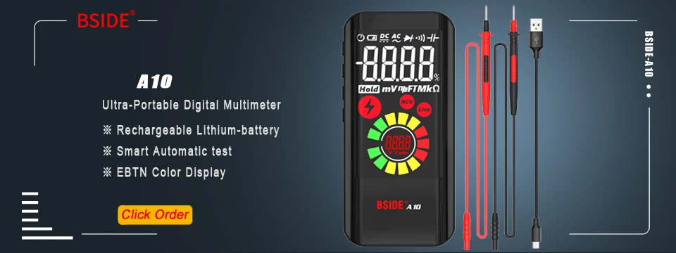 Цифровой мультиметр BSIDE, 9999 Т-RMS, 3,5 дюйма, ЖК-дисплей, цветной дисплей, тестер напряжения постоянного и переменного тока, емкость, Ом, диодный мультиметр, Бесконтактный индикатор напряжения, Гц