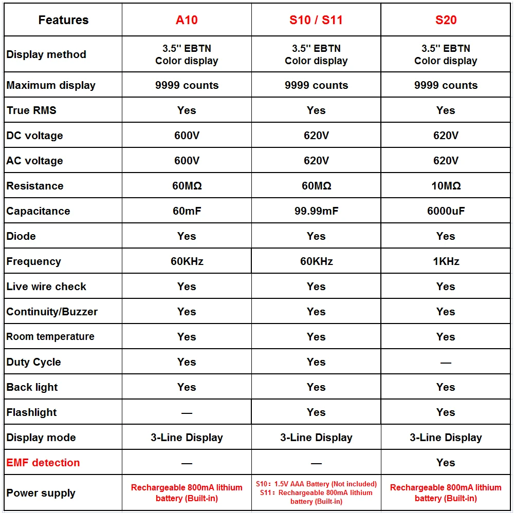 Описание:-Супер большой ЖК-дисплей, очень легко читается 3,5 "HD дисплей разработан BSIDE.-Прочный защитный чехол для защиты от ударов, фантастики и ударов.-Встроенный литий-ионный аккумулятор емкостью 800 мА · ч, вы никогда не будете беспокоиться об отсутствии питания.-Бесконтактное Обнаружение напряжения переменного тока, конструкция датчика верхней части, гораздо безопаснее для определения напряжения переменного тока.-Большой экран с высоким разрешением может показать 3 результаты тестирования на экране, такие как напряжение, частота и аналоговый бар. Характеристики: Наименование товара: мультиметрБренд: BSIDEРазмер:143.4x70.9x15.7мм Цвет: черный/красный Дисплей: 9999 подсчетовЭкран: 3,5 дюйм (ов)Разрешение: 0,11 Ом S10 Мощность: 1,5 в (ААА) x 2 (не прилагаются)Диод: Автоматическое определение диода в тех случаях, когда менее чем 3,0 VDC Напряжение: 0,8 V-620V ±(0.5% + 3), Разрешение: 0,001 VAC Напряжение: 2,2 V-620V ±(0.5% + 5), Разрешение: 0,001 VСопротивление: 1Ω-999.9Ω ±(2.0% + 5), 1k60-60mΩ ±(1.0% + 3)V-оповещение (Бесконтактное Обнаружение напряжения): звуковой сигналПроверка в режиме реального времени: звуковой сигнал тревоги, полоса дисплея ЖК-экранаНепрерывность: если сопротивление менее 30 Ом, звуковой сигналРабочий цикл: 0.1%-99.9% ±(3.0% + 5) (переменный ток: 2 в-620 в), разрешение: 0.1%Емкость: 1nF-999.9nF ±(6.0% + 5), 1uF-99.99mF ±(3.0% + 3), разрешение: 0.001nFЧастота:1 Гц-1000 Гц ±(1.0% + 5) (переменный ток: 2 в-10 В); Разрешение: 0,001 Гц1 кГц-60 кГц ±(1.0% + 5) (переменный ток: 10 В-620 в); Разрешение: 0,001 Гц Примечание: -Возможны отклонения в размере от 1 до 3 см при ручном измерении. -Отклонение цвета может отличаться из-за различных настроек монитора, пожалуйста, поймите.