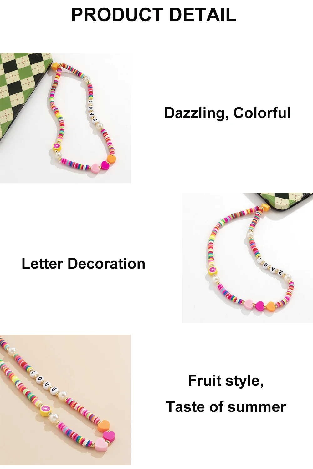 Новые модные яркие бусины в форме фруктов и сердца, искусственные акриловые бусины ручной работы с защитой от потери, шнурок с подвеской для женщин и девушек
