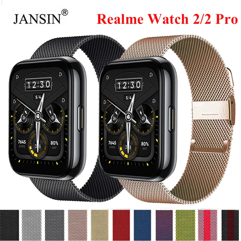 Ремешок Миланская петля из нержавеющей стали для часов Realme 2 Pro, сменный металлический браслет для смарт-часов realme Watch 2 2 pro