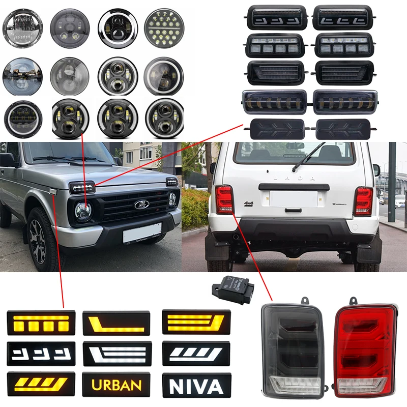 7-дюймовые светодиодные фары для Lada 4x4 Urban Niva светодиодный Светодиодные Автомобильные дневные ходовые огни, сигнал поворота, задний стоп-сигнал, габаритная лампа