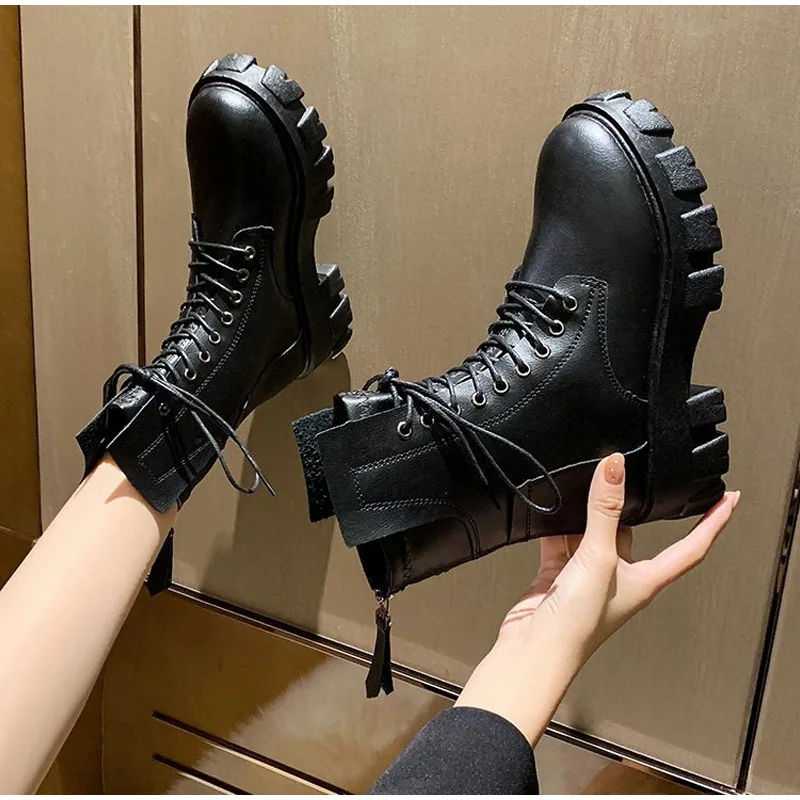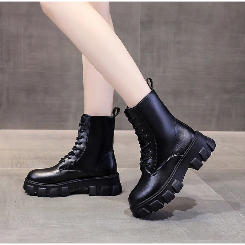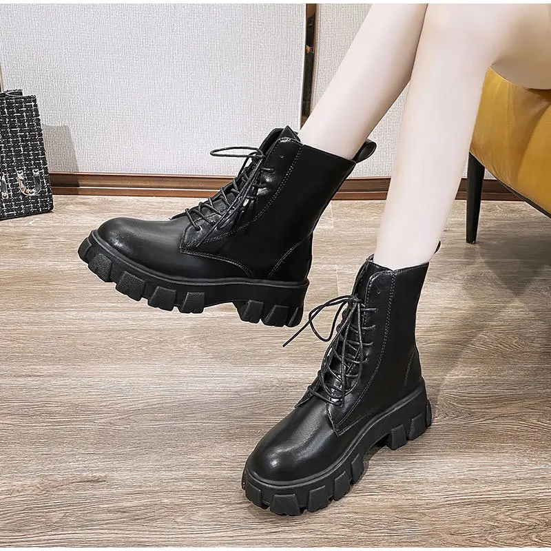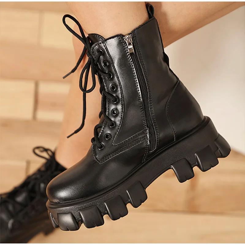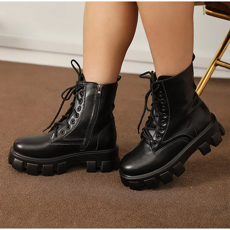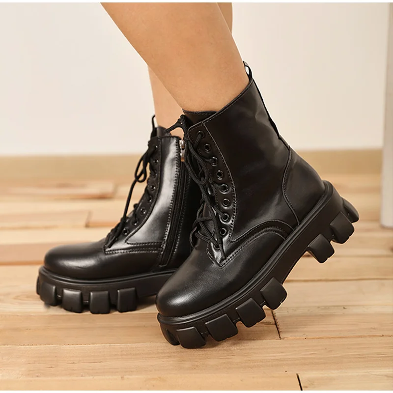 Женские ботильоны из ПУ кожи, на толстой подошве, на шнуровке