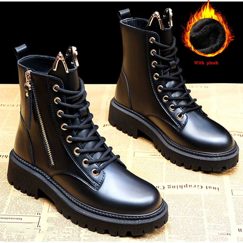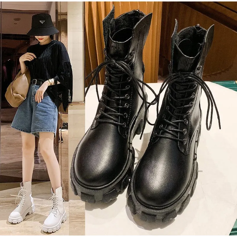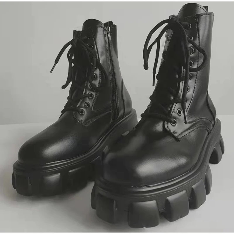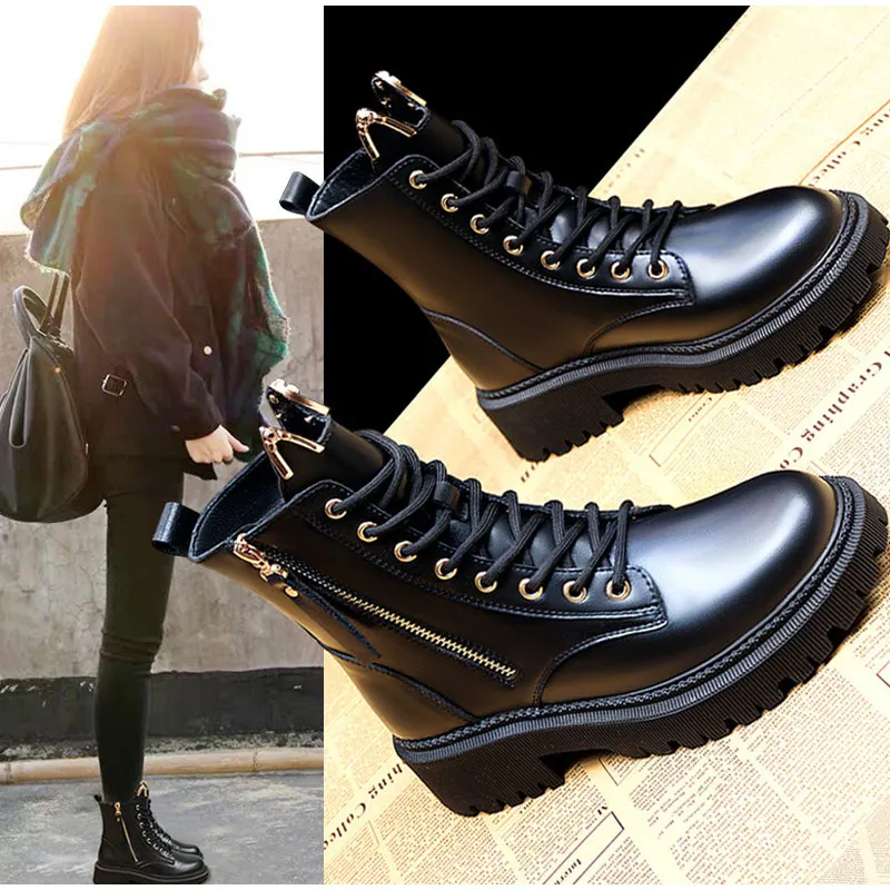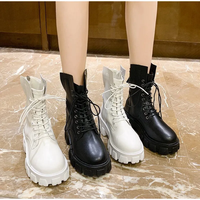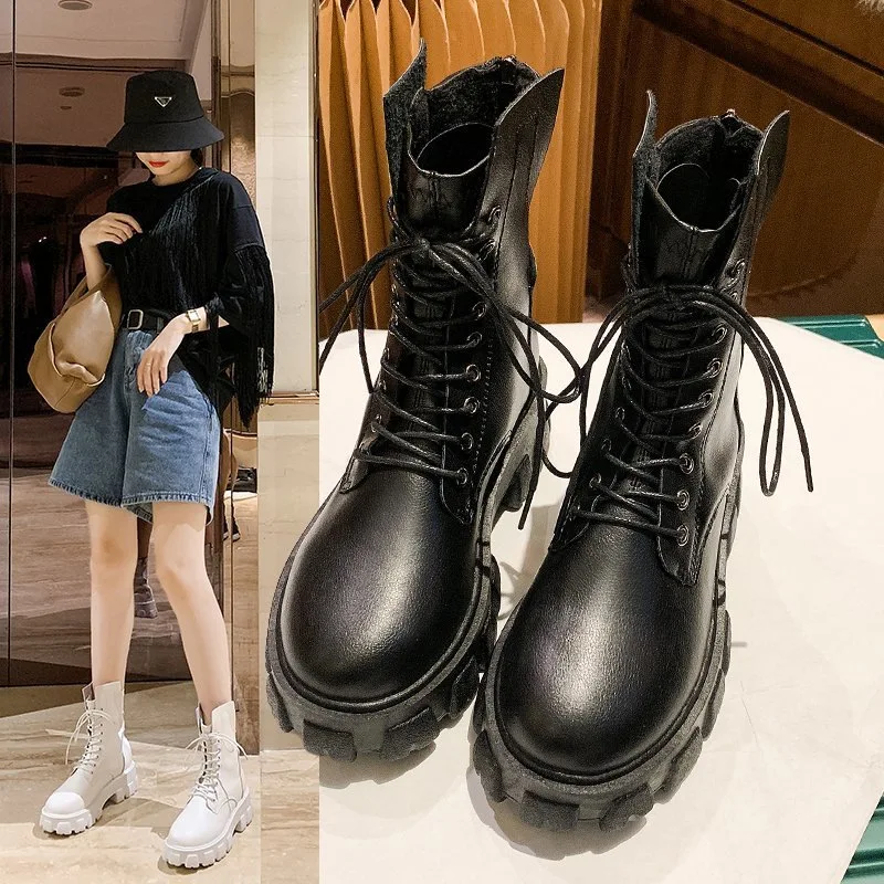 Женские ботильоны из ПУ кожи, на толстой подошве, на шнуровке